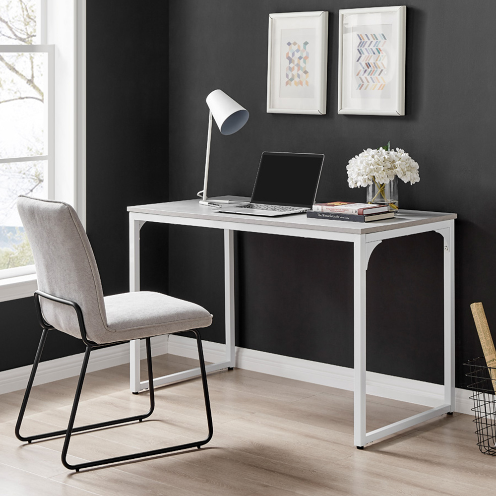 - Modern grey marble effect desk with white legs