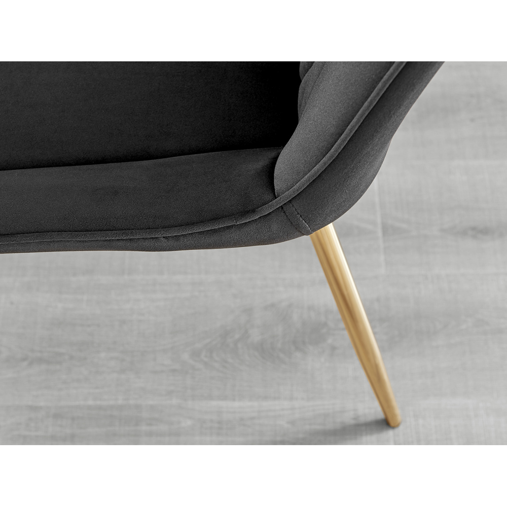 Modernise your dining area with the luxurious velvet upholstered Cesano Black Dining Chairs from Furniturebox. With a nod to the Mid-century modern design era, the Cesano features gorgeous textured diamond stitching with an ergonomically designed curved seat pad blending seamlessly with the supporting medium-high backrest. Sat atop elegant slightly tapered legs in gold. The Cesano is a perfect match for any dining table or use as a luxe vanity seat in the bedroom, as an occasional chair for the living area or to add a bit of luxury to your home office. Set of 2.