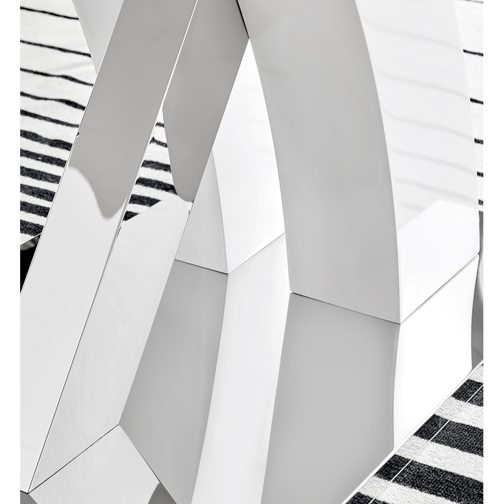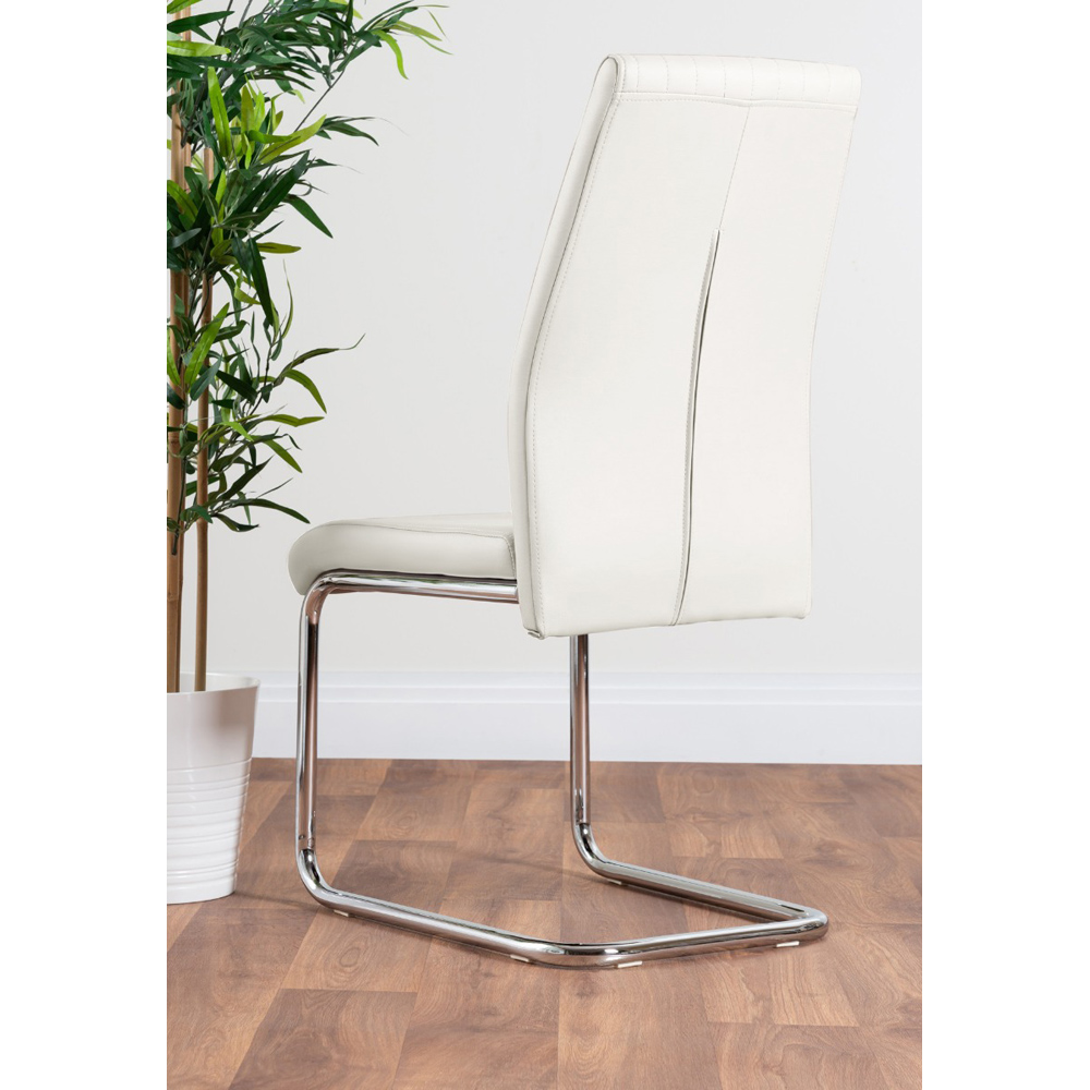 Light up your dining space with this Furniturebox Columbia Fontana 6 Seater Dining Set White Gloss and Chrome. The set includes a stylish table made from chrome metal and MDF and finished with a smooth high gloss lacquer coating. It has a large 160 x 90cm tabletop, allowing plenty of room for dining with guests. Additionally, the slick chrome support makes it extremely sturdy and is easy to maintain with its wipe-clean surface. Pair it with Fontana chairs for a complete look. These eye-catching chairs with on-trend chrome cantilevered legs and supportive seat pads won't let you compromise on comfort.