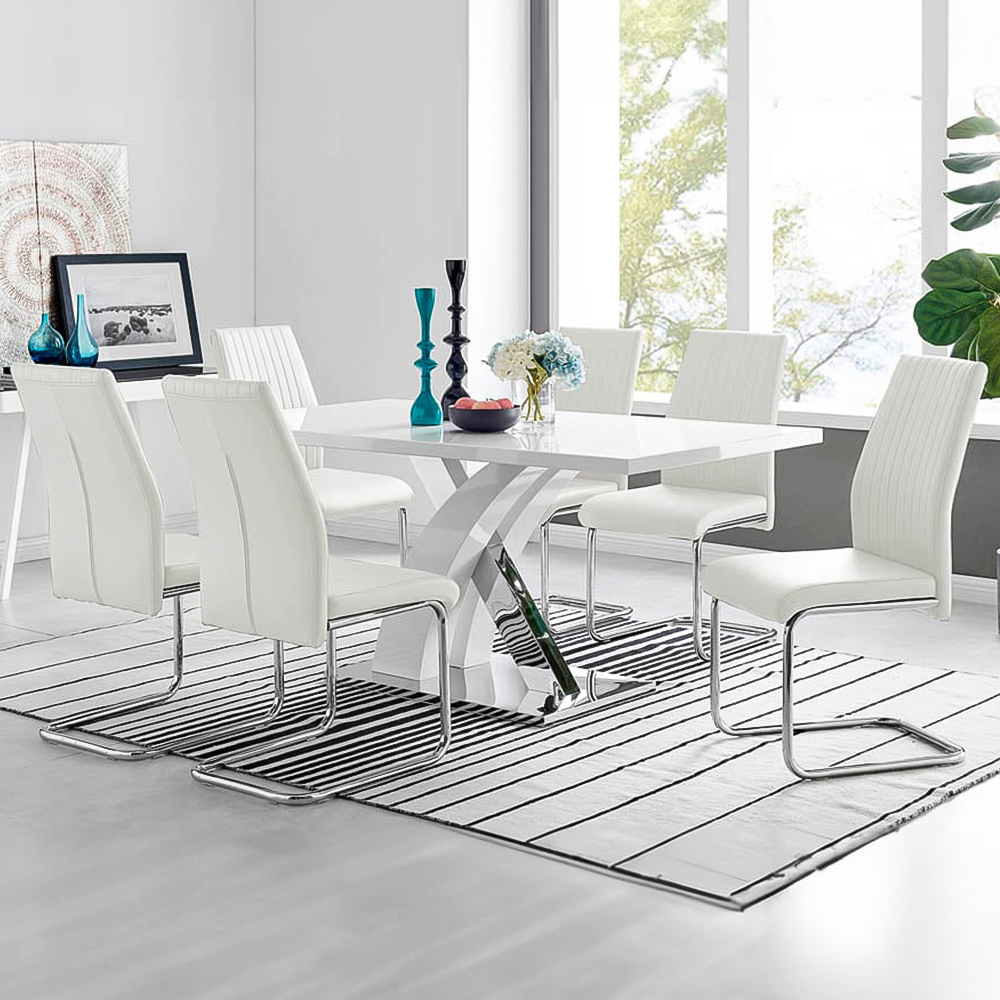 Furniturebox Columbia Fontana 6 Seater Dining Set White Gloss and Chrome