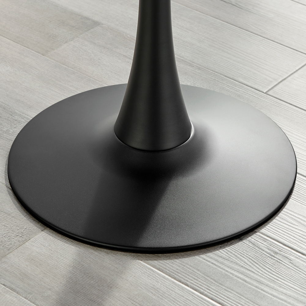 Enhance your kitchen decor with the Furniturebox Elissa Cesano Marble Effect 2 Seater Round Dining Set White Blue and Gold. The 80cm round dining table features a marble-effect tabletop with a black powder-coated metal pedestal base. The sleek table is suitable for most interior spaces while the open space around the pedestal makes it ideal for relaxed dining. This set includes two blue chairs upholstered using soft velvet with cosy padded seats for ultimate comfort. The Cesano dining chairs have ergonomically designed curved seats with diamond pattern stitching and tapered gold-effect legs for stable support. This dining set has a soothing design that will effortlessly blend with all types of interior spaces.