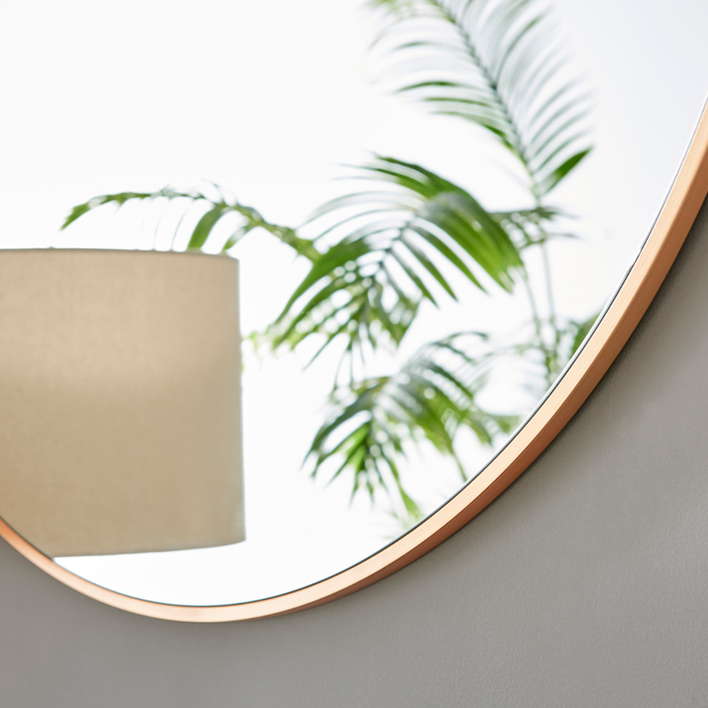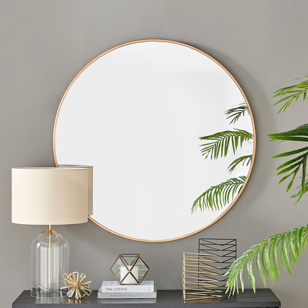 Elevate your home decor with this Furniturebox Emma Round Copper Frame Wall Mirror. Stylish and elegant, this mirror features an on-trend round design that looks stunning in any space - including the living room, dining room, bedroom or hallway. Crafted into a bigger and better design, the mirror is perfect to open up a room and add light and space to make it appear bigger and brighter. The simple yet modern design of the mirror fits well in both contemporary and traditional homes. Its copper metal frame makes a statement choice and will get the attention of all your guests. Plus, it's ideal for adding light to dark corners and uplifting any dull space. Size: 100cm. Please note: This round metal mirror is well-packaged to arrive safely. The hardware for hanging the mirror is not included. It is not suitable for use in bathrooms.