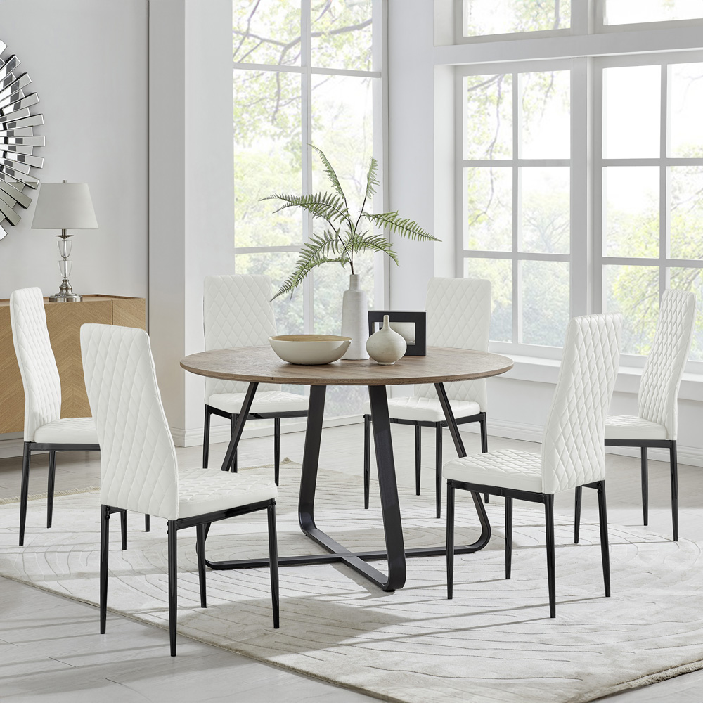 Furniturebox Fira Valera Wood Effect 6 Seater Round Dining Set Brown White and Black
