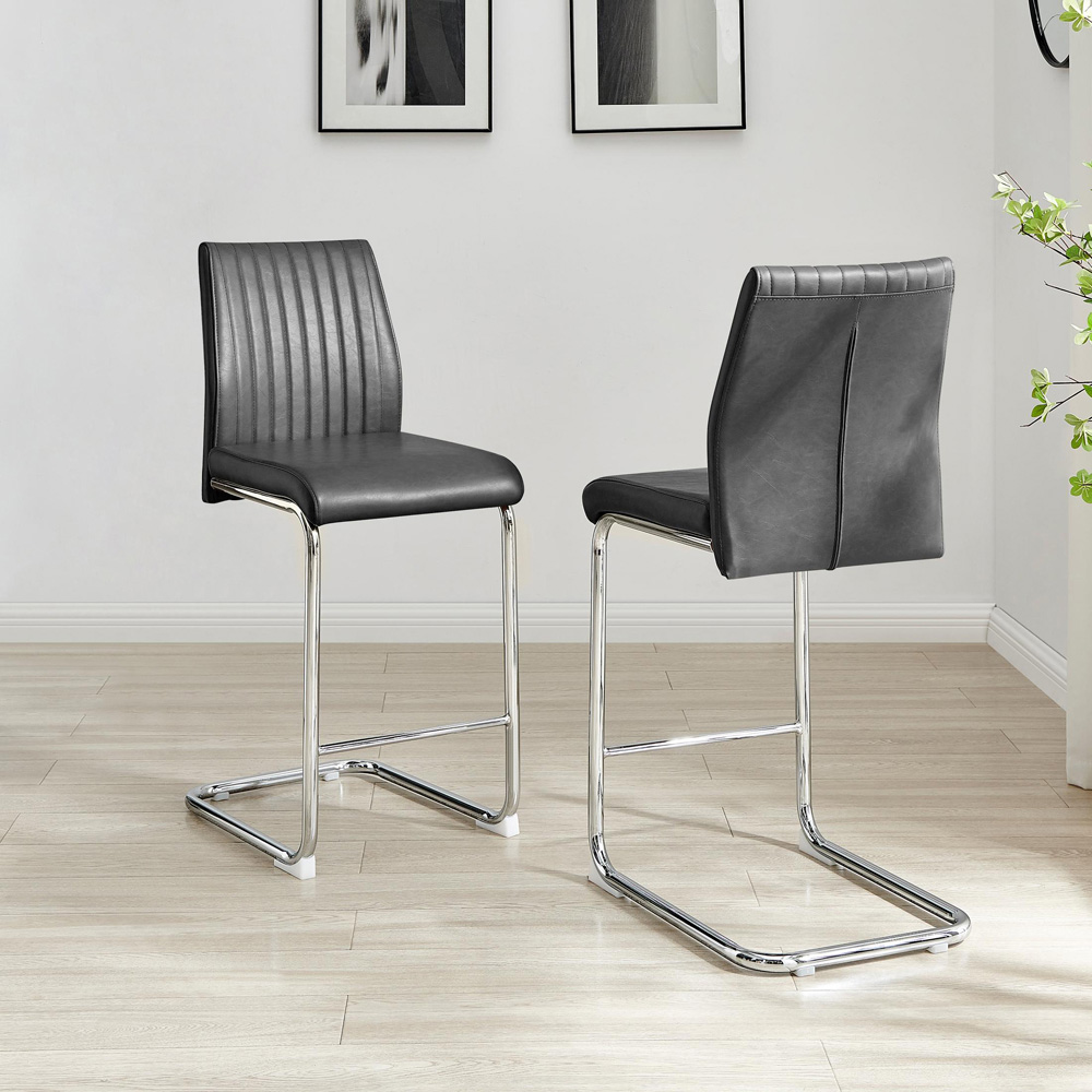 Furniturebox Fontana Black and Silver Faux Leather Bar Chair Set of 2