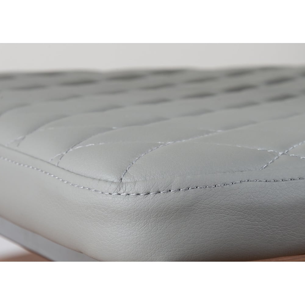 Savour every moment in style with the Furniturebox Fonti Valera 6 Seater Dining Set Grey and Chrome. The set features an extending dining table with elegant chrome legs supporting a sleek and beautiful tempered glass top that easily allows the addition of extra diners once fully drawn out. A bar handle at each end of the table allows an effortless extension from 110cm to 170cm, with each panel sliding smoothly from under the table to click neatly into place. Paired with beautiful diamond quilted chairs, you can't go wrong with this set. The ergonomically designed chairs for maximum comfort and support are made from high-quality faux leather with a deep foam seat cushion and plastic feet to protect the floor from damage.