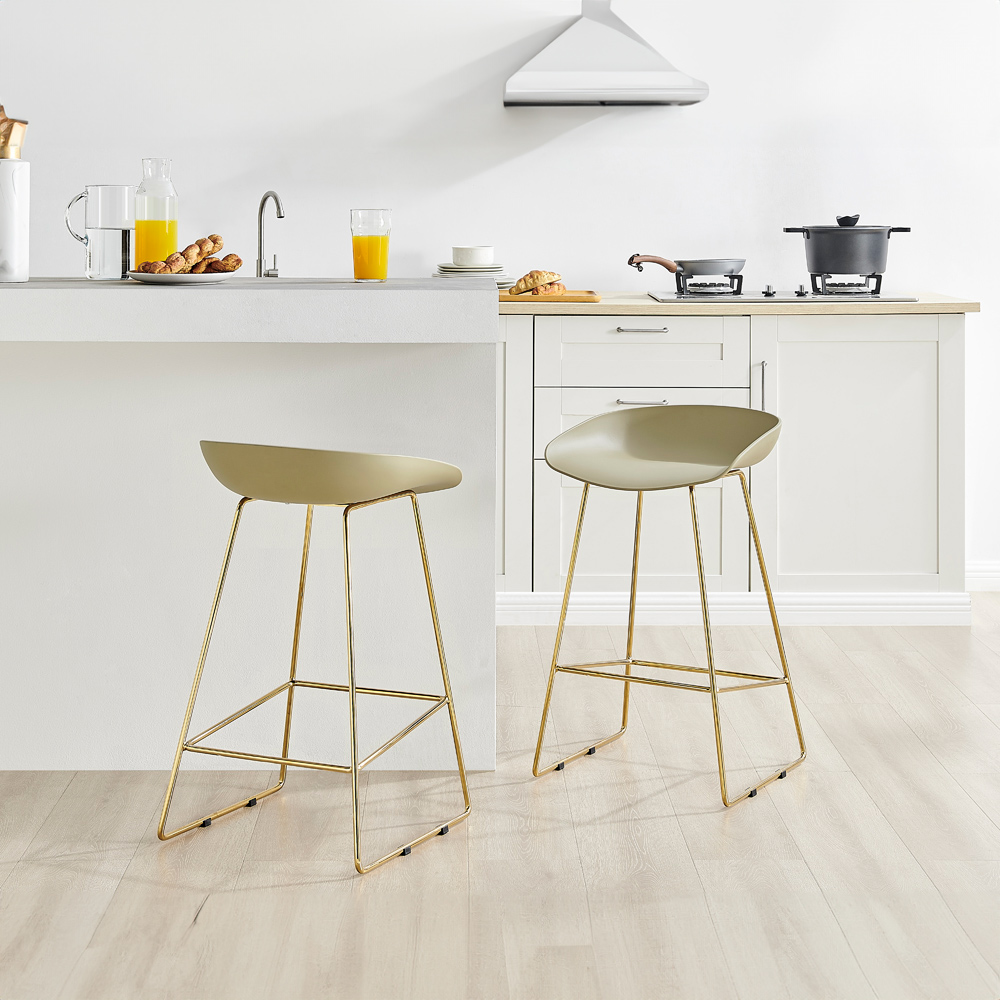 The Furniturebox Harding Bar Stool Chairs are the perfect blend of elegance and minimalist design. A modern low back and wide seat with gentle curve for relaxed dining without compromising on style. This design is inspired by organic natural shapes and ticks all the dining room trend boxes we've been seeing emerging from Italy. The classy taupe beige seats and gold legs make for a striking combination and hits those Scandi meets Industrial-Chic notes. The bar stools will look great with a range of bar table styles and finishes from wood to sleek glass, making them really versatile too!
