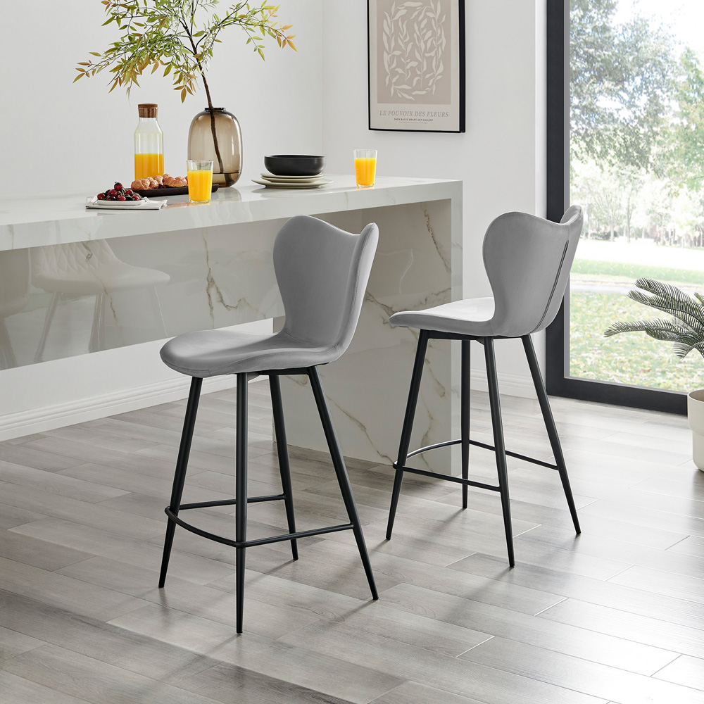 Portland Grey Luxurious Velvet Touch Bar Stool Set of 2