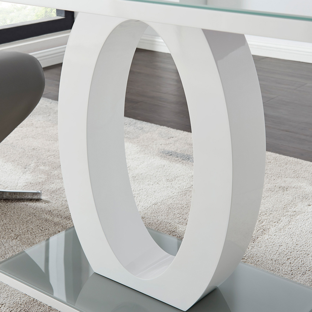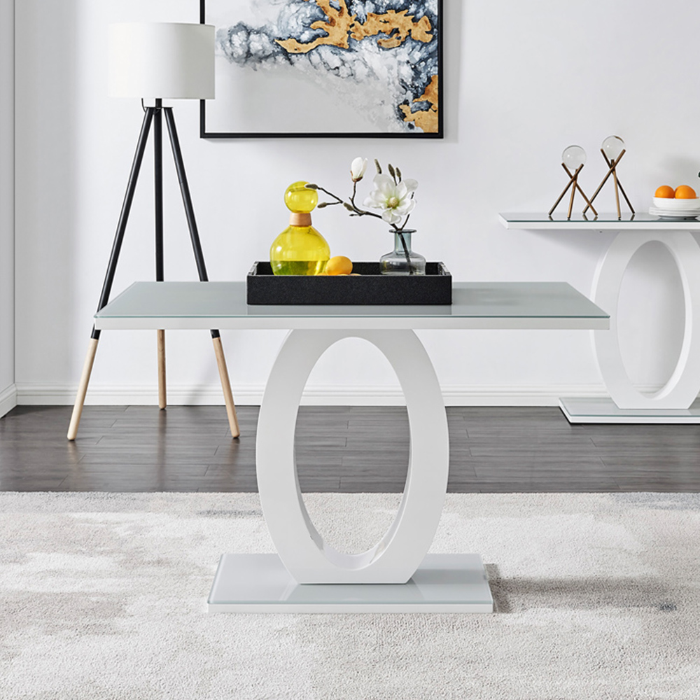 Make a beautiful addition to your kitchen with this Furniturebox Lucia 4 Seater Dining Table White High Gloss and Grey. This beautifully designed Lucia table features a two-tone effect and crisp, clean lines, which gives it a modern wow factor. It is silhouetted by the rectangular base and is combined beautifully with the toughened glass surface. With a large 120 x 70cm tabletop, it is made from grey-tempered glass and is easy to maintain, which offers plenty of room for dining with guests.