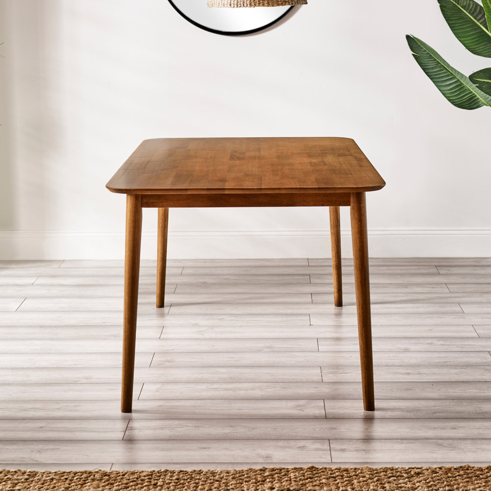 Brighten your living space with this beautiful Furniturebox Lymington 6 Seater Walnut Effect Solid Wood Large Dining Table. A modern take on traditional dining furniture, it easily seats up to 6 people so there's plenty of room for your family or guests. Crafted from 100% solid rubberwood with a dark walnut stain, it features mildly angled legs that are brought up to date with simple straight lines to offer a slight mid-century retro look you'll love. From farmhouse country cottages to boho homes, it suits a range of home styles so you can transform your dining room easily.