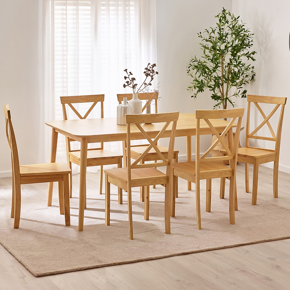 - Includes 6 cross back chairs with oak effect stain