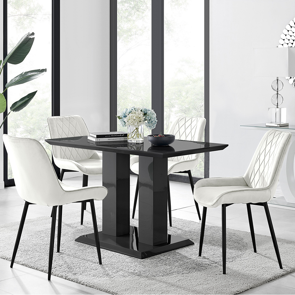 Furniturebox Molini Cesano 4 Seater Dining Set Black Gloss and Cream