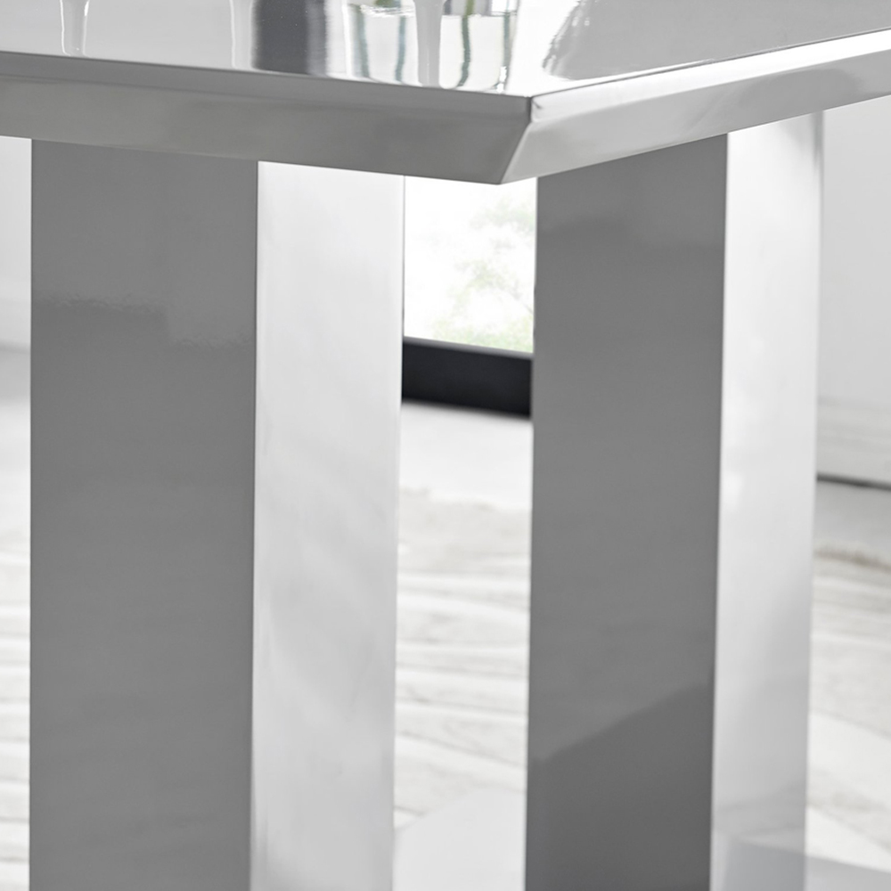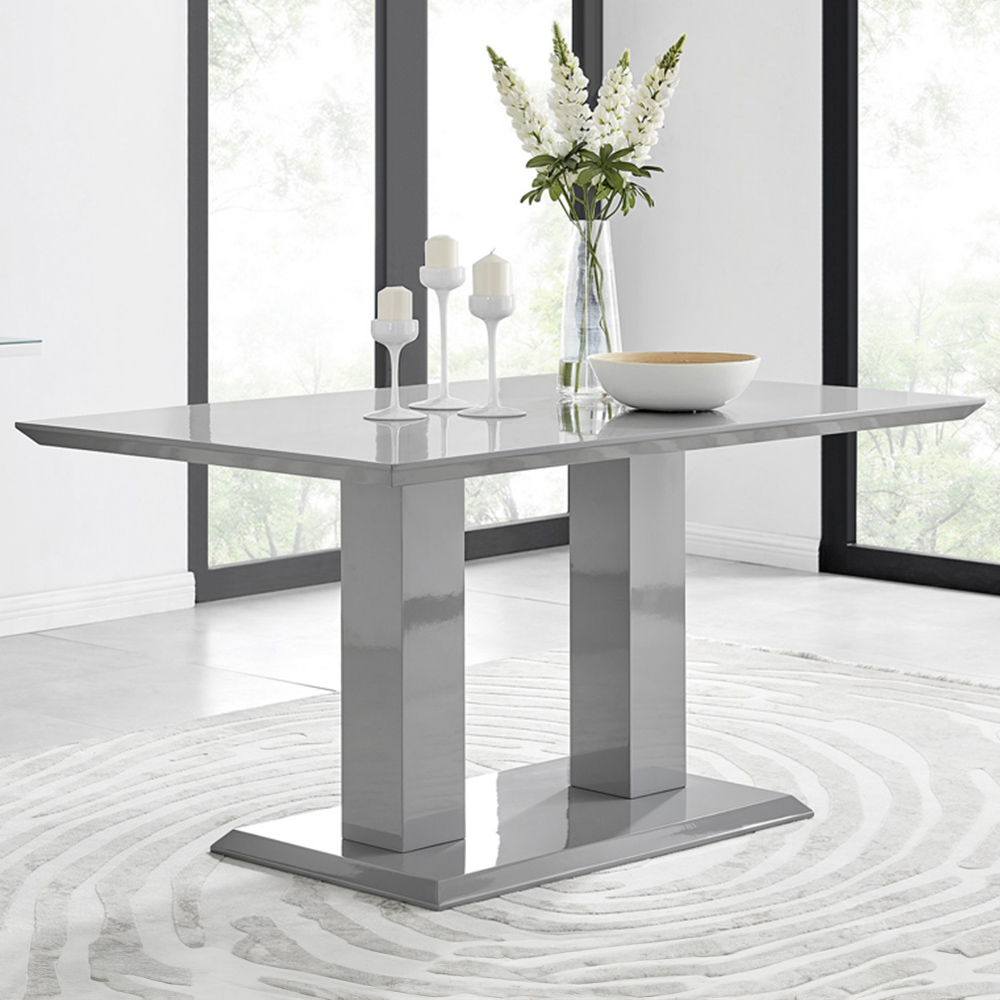 Upgrade your kitchen space with this Furniturebox Molini Cesano 6 Seater Dining Set Grey Gloss Mustard and Chrome. This elegant Molini dining table boasts a large 150 x 90cm surface, leaving plenty of room for dining with guests. Beautifully finished with a slick high gloss lacquer surface, the table stands out and would provide a modern look to any home. Its high gloss finish also makes it easy to maintain. This table also has two beautiful pillars for sturdy construction. The set also includes six luxurious velvet upholstered Cesano dining chairs, which tie off this set nicely. The Cesano chairs feature gorgeous textured diamond stitching with an ergonomically designed curved seat pad blending seamlessly with the supporting medium-high backrest. The chairs also have chrome legs, which adds a bold touch.