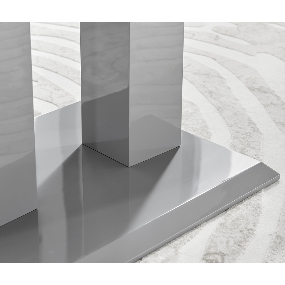 Redefine your dining experience with this Furniturebox Molini Fontana 4 Seater Dining Set Grey Gloss Black and Chrome. With its unique pillared structure and high gloss surface, the dining table has a modern but elegant design, comfortably seating up to four guests with its generous 120 x 70 cm surface. Paired alongside beautiful faux leather diamond quilted chairs, you can't go wrong with this set. The ergonomically designed chairs for maximum comfort and support are made from high-quality faux leather with a deep foam seat cushion and plastic feet to protect the floor from damage.