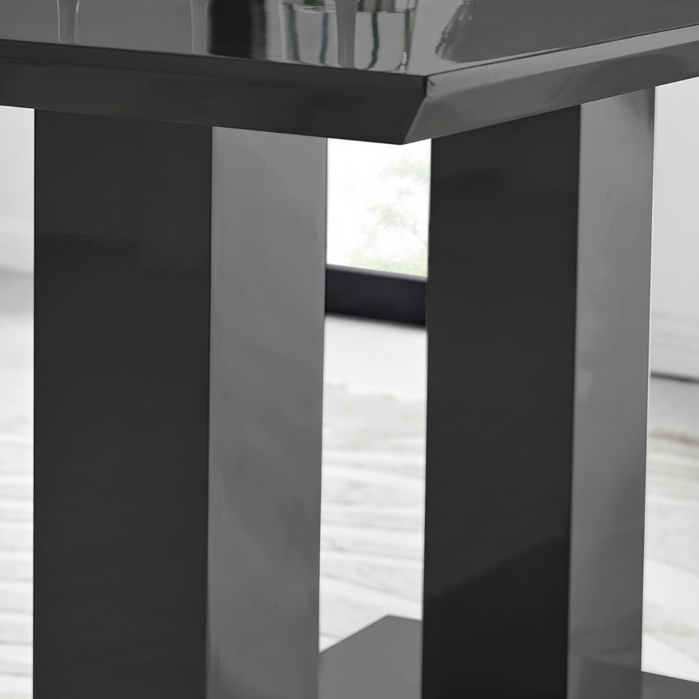 Redefine your dining space with the Furniturebox Molini Fortana 6 Seater Dining Set Black High Gloss and Black. With its sleek, pillared structure and glossy surface, the table exudes class and elegance. The generous 150 x 90cm surface comfortably seats up to six guests, making it ideal for larger families. The chrome cantilevered legs and supportive seat pads add to the table's trendy design without sacrificing comfort. Don't miss out on this remarkable piece to elevate your dining space.