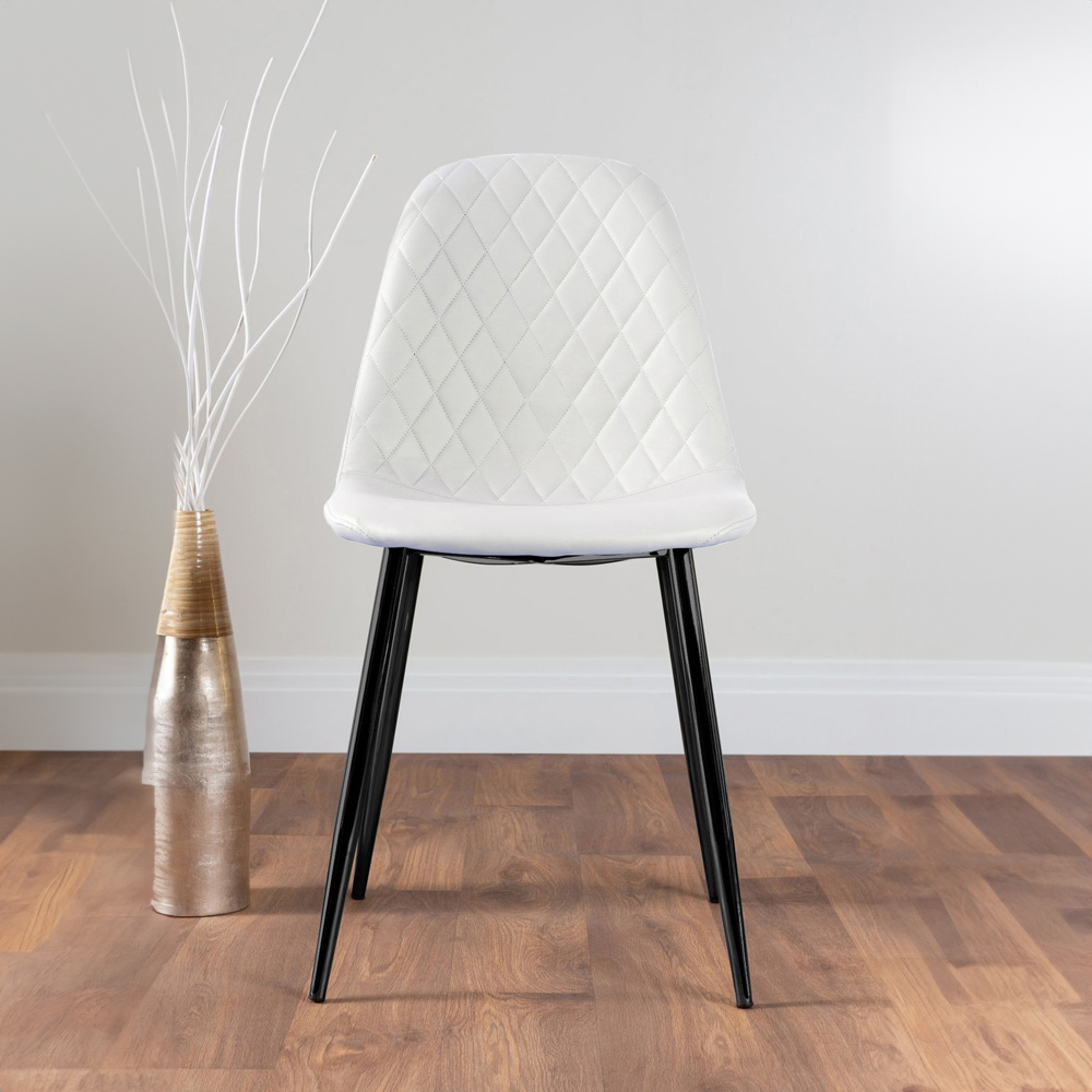 Upgrade your kitchen space with this Furniturebox Molini Solara 6 Seater Dining Set Black Gloss and White. This elegant Molini dining table boasts a large 150 x 90cm surface, leaving plenty of room for dining with guests. Beautifully finished with a slick high gloss lacquer surface, the table stands out and would provide a modern look to any home. Its high gloss finish also makes it easy to maintain. The set includes six Solara chairs, which tie off this set nicely. Its sleek black powder-coated legs are a great way to add a touch of minimalist style to your home. The Scandi-style faux leather seat with diamond pattern stitching is a unique take on a classic design, offering comfort and durability for everyday use.
