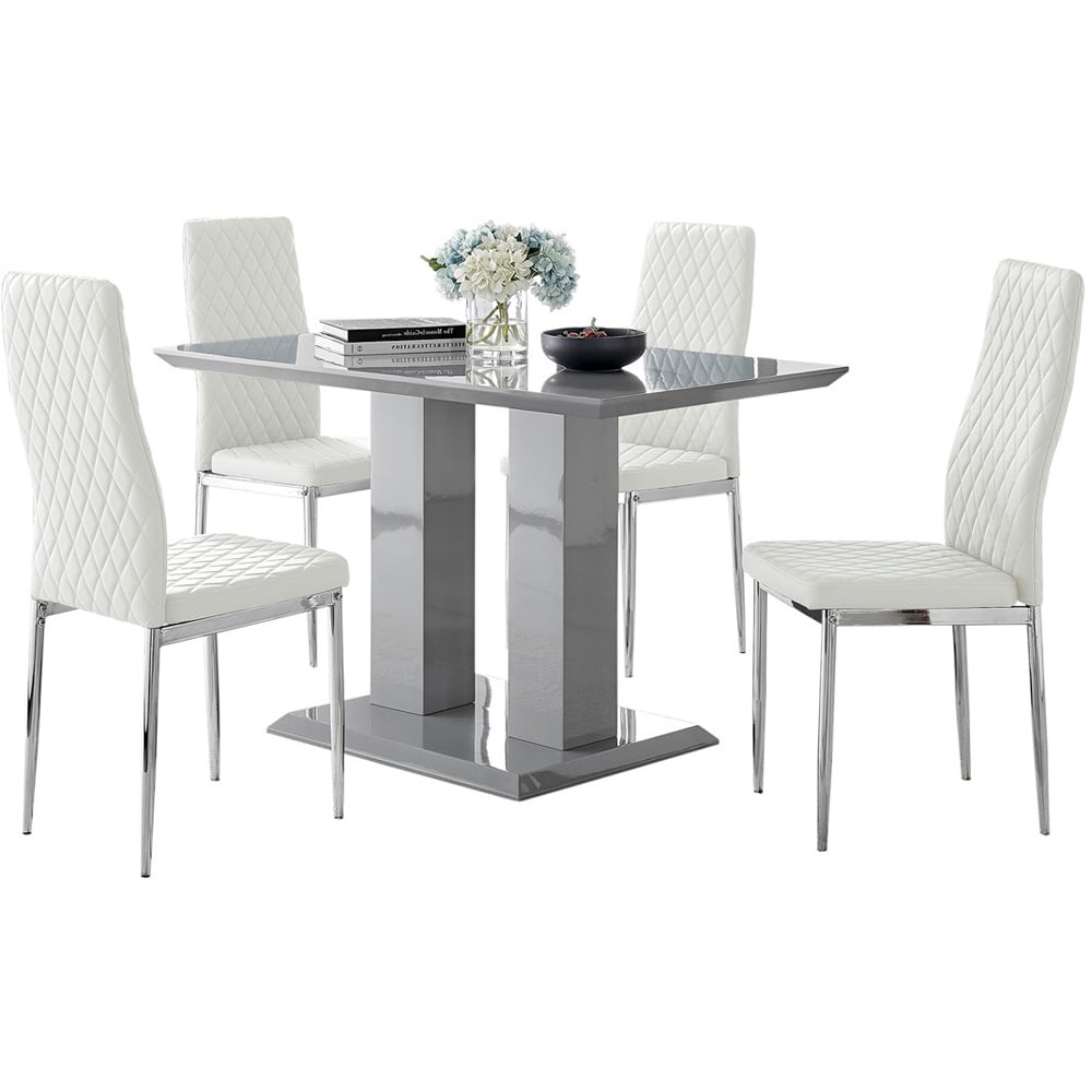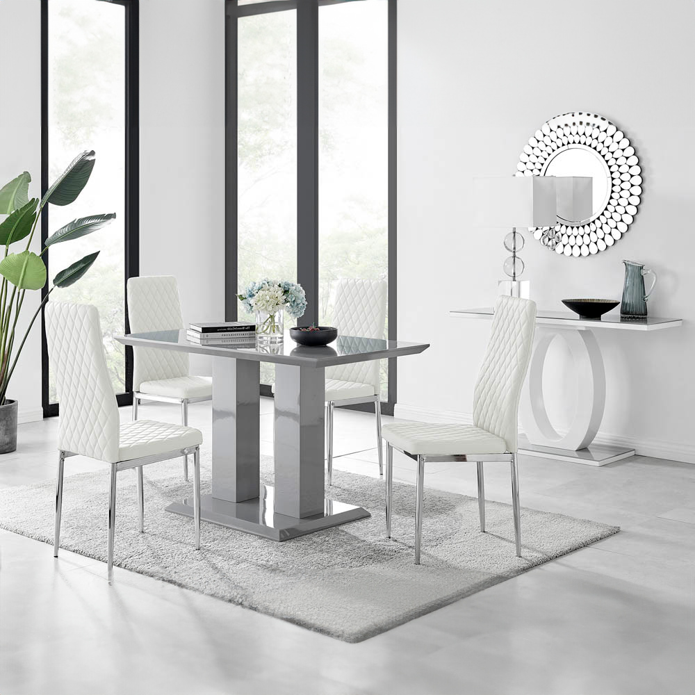 Furniturebox Molini Valera 4 Seater Dining Set Grey Gloss White and Chrome