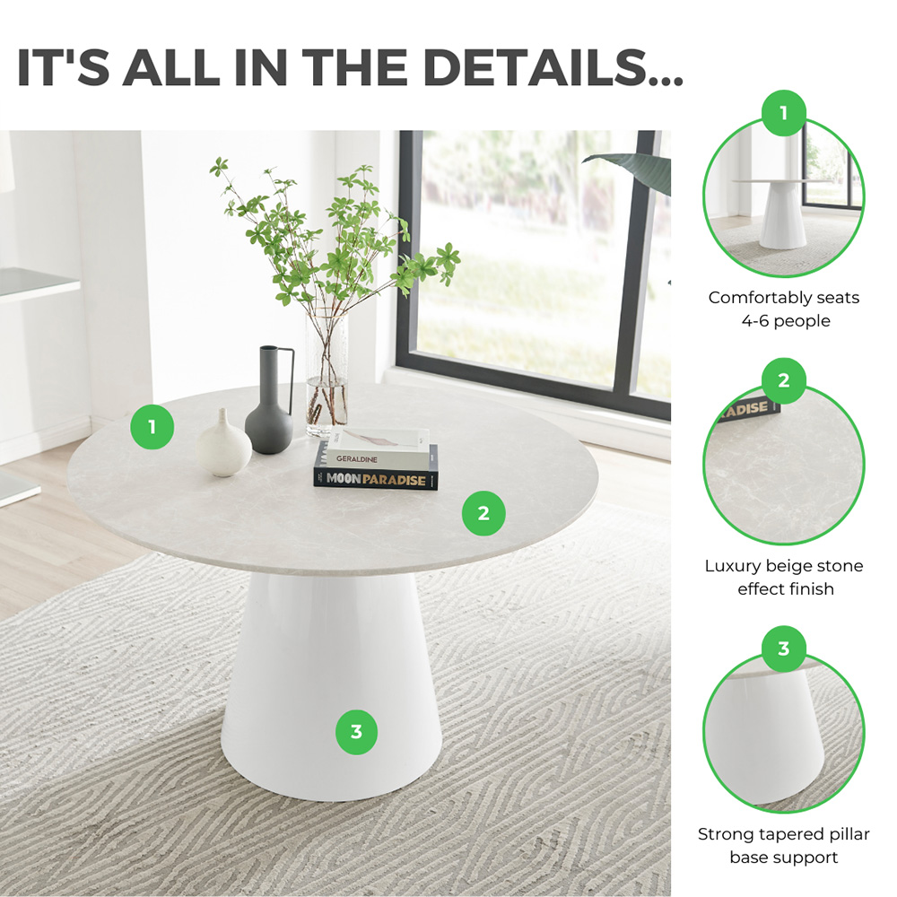 Furniturebox Nova 6 Seater Round Dining Table Beige Stone Effect