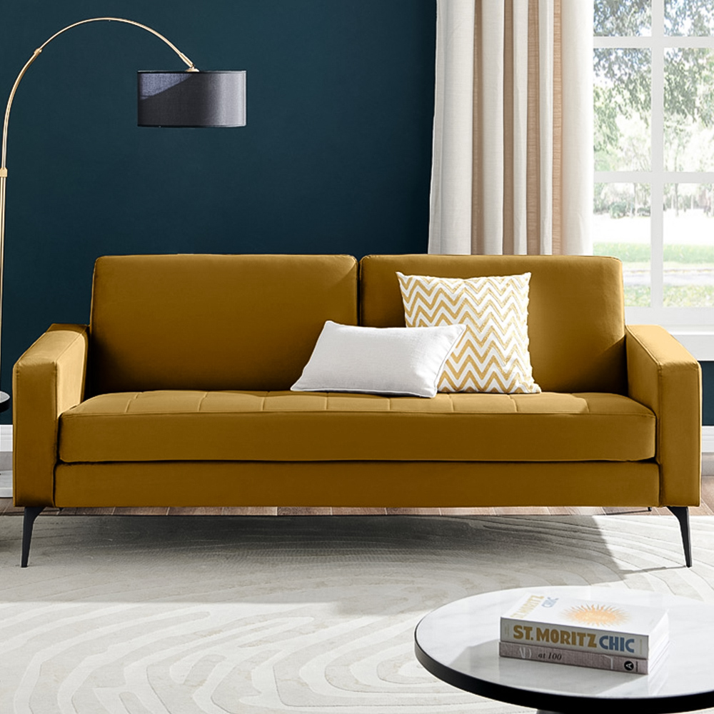 2 Seater Ochre Velvet Sofa