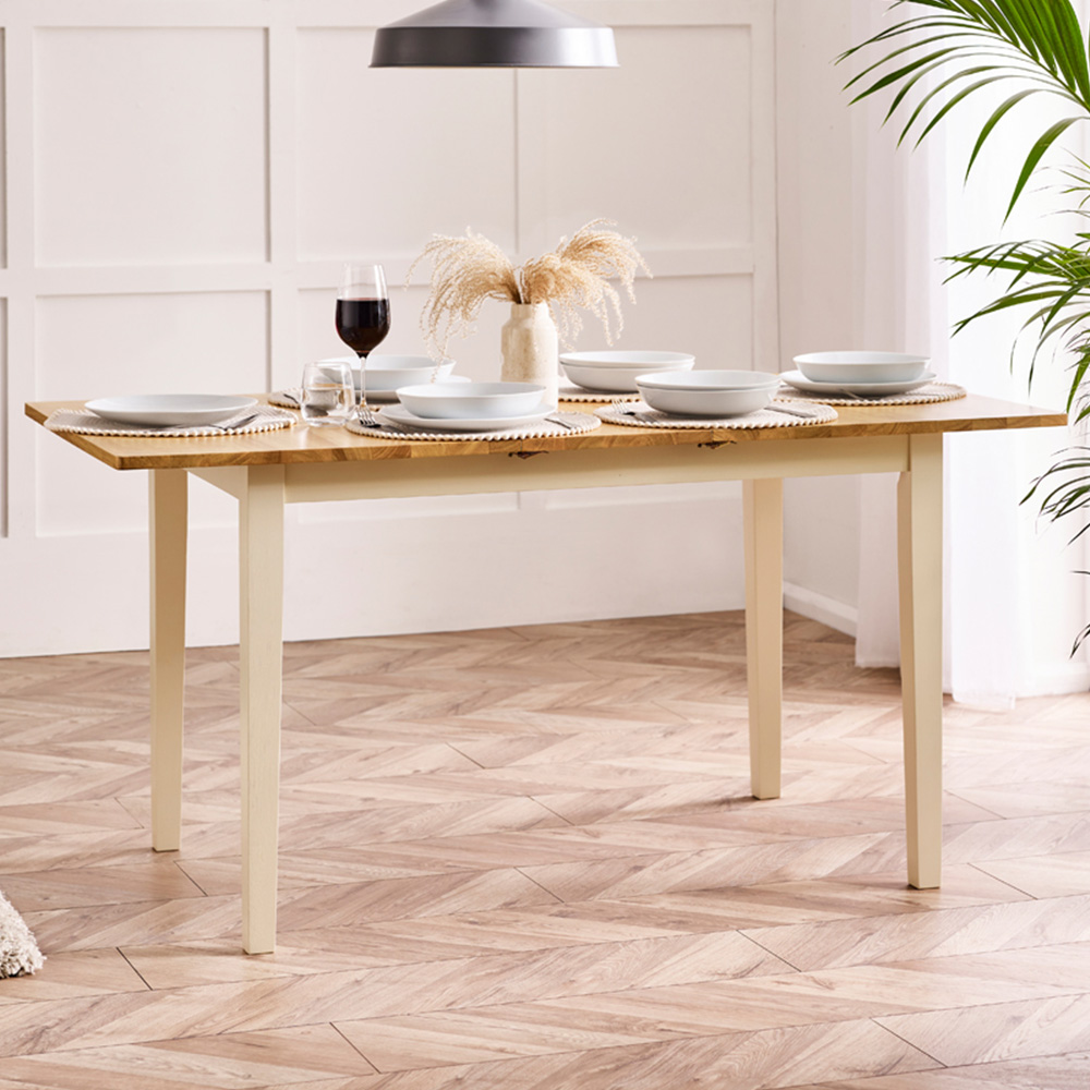 Furniturebox Salisbury 6 Seater Wooden Extendable Dining Table Oak and Cream