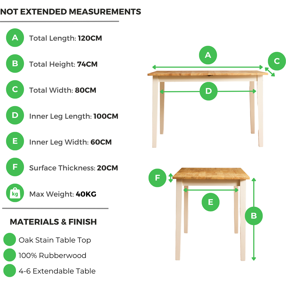 • Stylish cream legs and oak tabletop