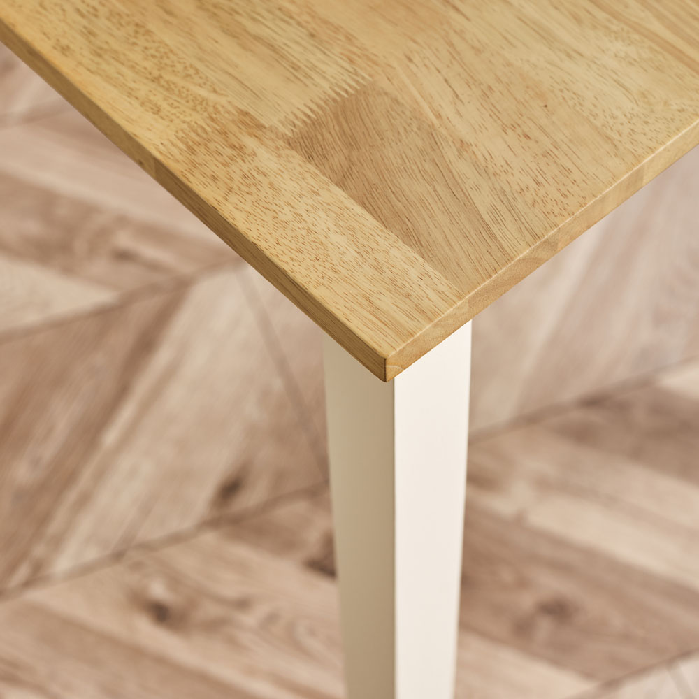 Experience stylish dining with this Furniturebox Salisbury Walton 6 Seater Extending Dining Bench Set Cream. This wooden dining table has cream legs and a pale oak tabletop, which can go with any home decor. It is great for smaller families and entertaining guests. The table also comes with the bonus of being an extending dining table, seating four to six people when fully extended. Constructed from solid 100% rubberwood, this round table is sturdy and durable. It is paired with two Walton chairs and two small bench with pale oak seats. It also has cream paint and warm oak stain on the solid wood seat, complemented by simple straight lines.