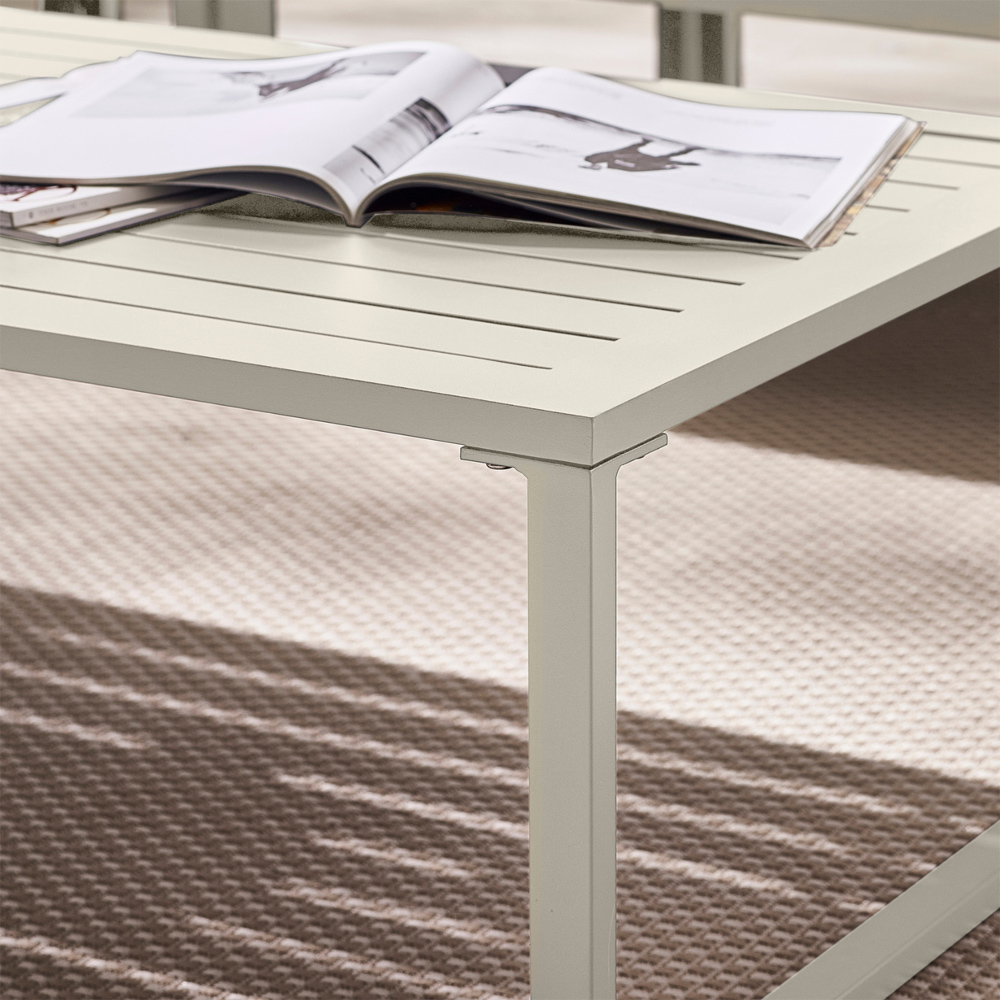 Gather around and create lasting memories with the Furniturebox Tanzania 6 Seater White Metal Corner Lounge Set. The metal outdoor six-seat corner sofa with coffee table set will be a gorgeous relaxed seating area for any outdoor living space, from patios to decks and conservatories. This strikingly simple modern design features a powder-coated aluminium frame with cushions that's all about that stripped-back minimalist super-modem style. The 8cm thick seat and back cushions bring all the comfort, and the matching rectangular coffee table has gorgeous square metal legs and a metal tabletop. Straight lines and simple shapes will create the ultimate garden seating space perfect for kicking back and relaxing with family and friends. The aluminium frame and table are UV and weather-resistant, so shouldn't fade. The cushions are splashproof (so if any spills occur, pick up the cushion and give it a firm pat on the underside to encourage the droplets to roll off). However, the cushions should not be left outside or in damp conditions. Store them somewhere warm and dry. If they do get wet, then allow them to fully dry in the sun or somewhere warm before you store them. This set includes a water-resistant cover, but please note that this is not fully waterproof, and you should still store your cushions somewhere dry during wet weather and through winter. The cushion covers are removable and washable. Note that the sofa sections come fully assembled, with the table requiring minimal assembly. Total length of left-hand sofa section: 218cm. Total length of right-hand sofa section: 296cm. Sofa depth: 78cm. Sofa back height: 65cm. Sofa seat height: 32cm. Protect your garden furniture with our durable and waterproof covers. Explore our wide range of heavy-duty Garden Furniture covers to find the perfect fit for your needs.