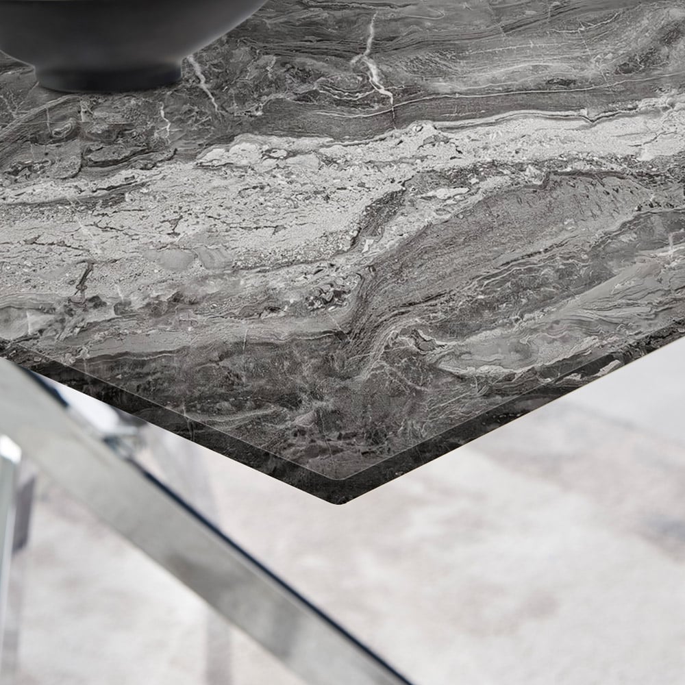 Furniturebox Tavalo 6 Seater Glass Dining Table Marble Effect and Silver