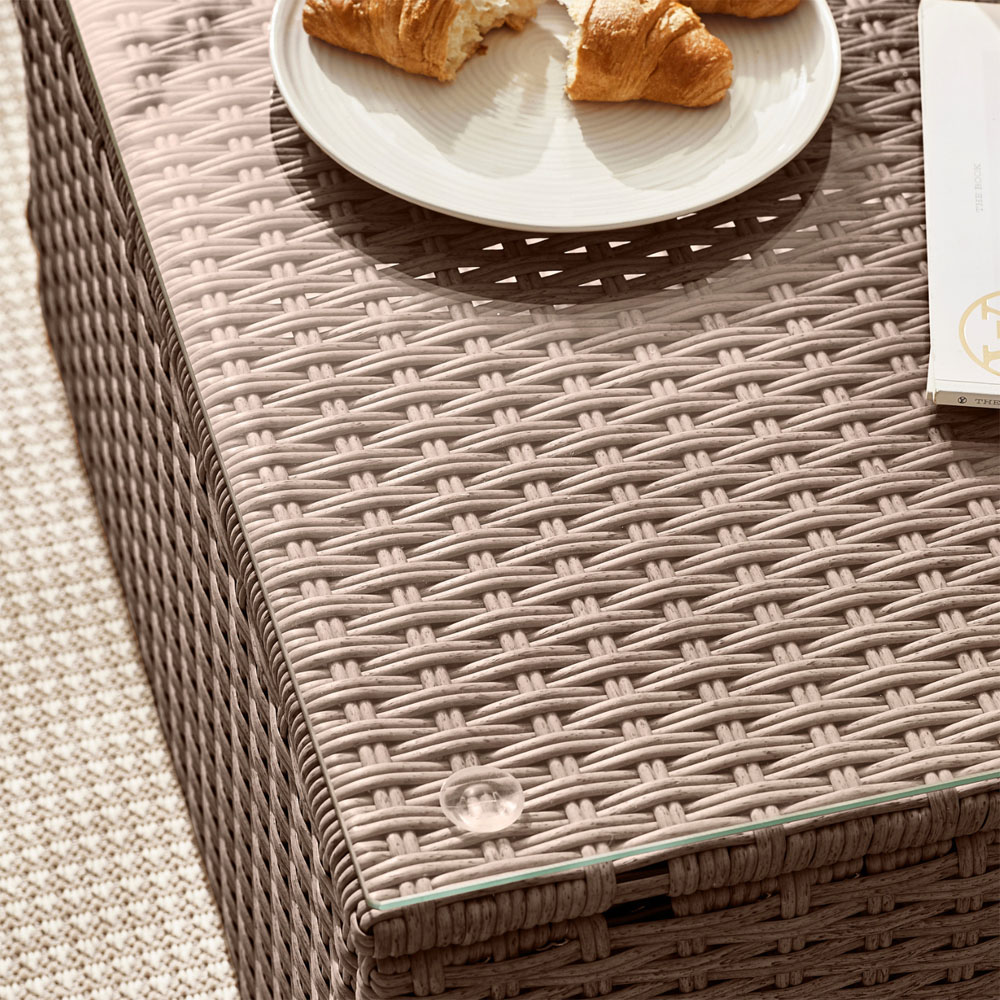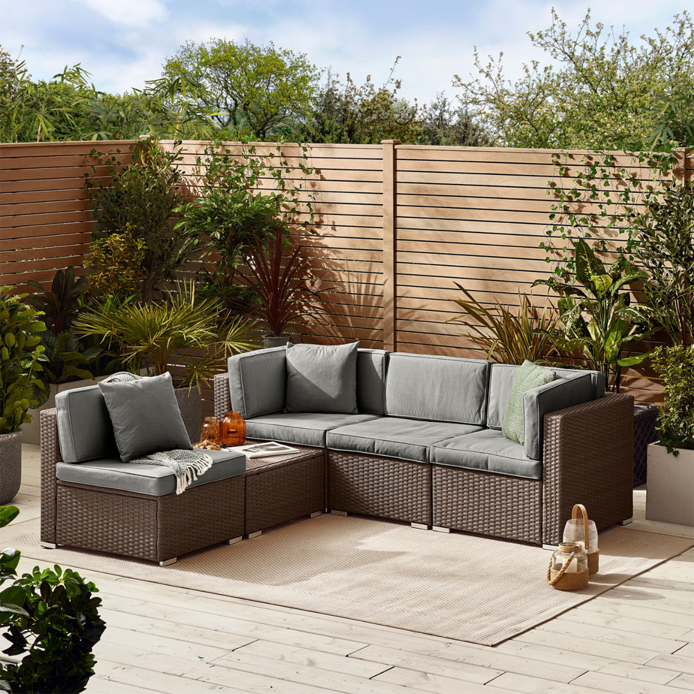 Gather around and create lasting memories with the Furniturebox Windermere 4 Seater Brown Rattan Sofa Lounge Set. This textured PE resin rattan outdoor sofa is perfect for gardens of all shapes and sizes. Thanks to its modular design, this rattan sofa set can be arranged in lots of different shapes to fit your garden. The rattan frame can be left outside all year round and is easy to maintain, needing just a wipe down with a soft cloth to remove any built-up dirt. The inner frame is made from metal, which is strong as well as lightweight, durable and weather-resistant. The thick, foam-filled seat and back cushions are 10cm thick, providing comfort and support for you to sit back, relax and enjoy the sunshine. The cushions are splash-resistant, so if you spill a drink, you can firmly pat the underside of the cushion to encourage the droplets to roll off and avoid soaking in. Each piece of the set can be moved around to suit your needs, whether you want to stretch out and sunbathe or have lots of seating for friends and family over for a barbecue. The clips included hold the pieces together so they don't slide apart. The matching coffee table with a tempered glass top provides plenty of space for drinks and nibbles. This set includes a water-resistant cover, but please note that this is not fully waterproof, and you should still store your cushion somewhere dry during wet weather and through winter. This modular garden sofa requires assembly with detailed guides included with your new sofa. Protect your garden furniture with our durable and waterproof covers. Explore our wide range of heavy-duty Garden Furniture covers to find the perfect fit for your needs.