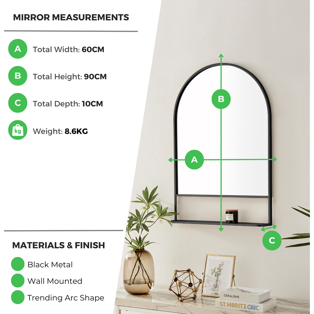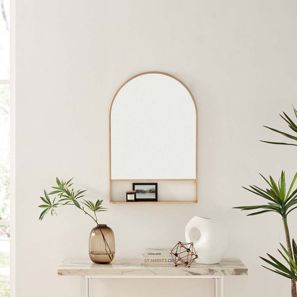 Furniturebox Zara Gold Arch Metal Wall Mirror with Shelf 90 x 60cm