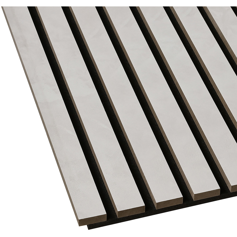 The highly innovative acoustic wall panel by Fuse is finished in a concrete effect, which provides a lightweight solution for anyone wanting the slatted look. The panel is easy to install and can quickly transform any indoor space with a contemporary redesign, from home offices to living rooms, bedrooms, or hallways.
