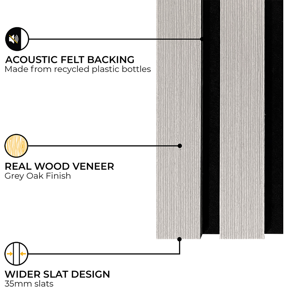 Fuse Acoustic Grey Oak Wooden Wall Panel 2.4 x 0.6m