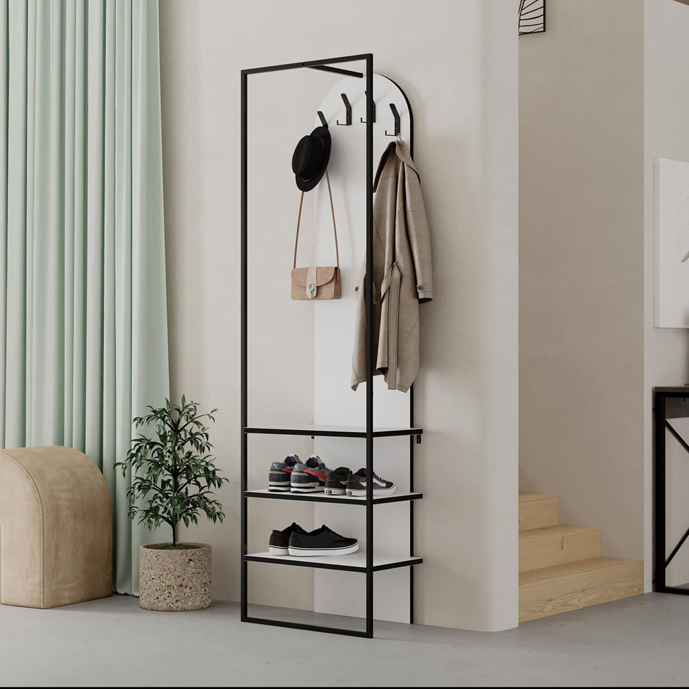 Meet the Retro Grey Hallway Shoe and Coat Storage Rack—your stylish and practical solution for a tidy entryway! Made from high-quality engineered wood, it features a strong black metal frame that not only adds durability but also enhances its modern look. The elegant retro grey finish gives it a sophisticated touch, making it a great fit for any decor. This versatile rack maximizes your hallway space with three spacious shelves for shoe storage, keeping your footwear organized and easy to grab. Plus, it has four large coat hooks for hanging coats, jackets, or bags, so everything you need is right at your fingertips. It arrives flat-packed in eco-friendly packaging, and with clear instructions, assembly is a breeze. Elevate your hallway organization with this chic storage rack today!