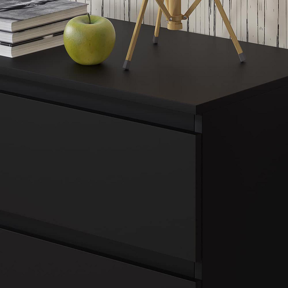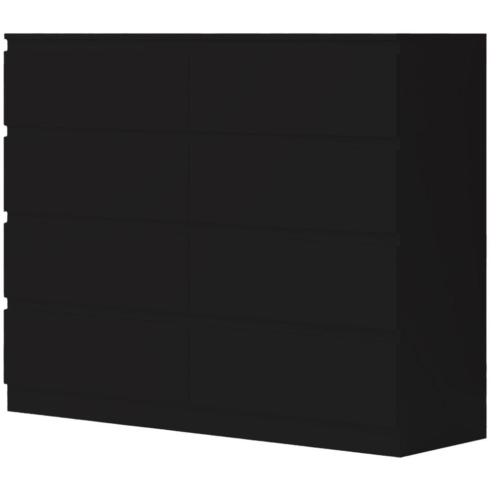 Introducing the Matt Black Carlton 8 Drawer Chest, a stunning addition to any modern interior. This stylish bedroom chest has a sleek no-handle design with 8 equal sized drawers arranged in a 4+4 layout. The Matt Black Carlton 8 Drawer Chest boasts 12cm deep drawers, providing ample storage space for all your essentials. Whether you need to organize clothing, accessories, or household items, this large bedroom chest offers a practical solution with its generous capacity. The drawers open smoothly on metal runners and each drawer has a bottom support bar to prevent bowing. Delivered flat-pack for home assembly, this impressive Matt Black Carlton 8 drawer bedroom chest will measure 110cm wide by 40cm deep and 99cm tall once assembled.