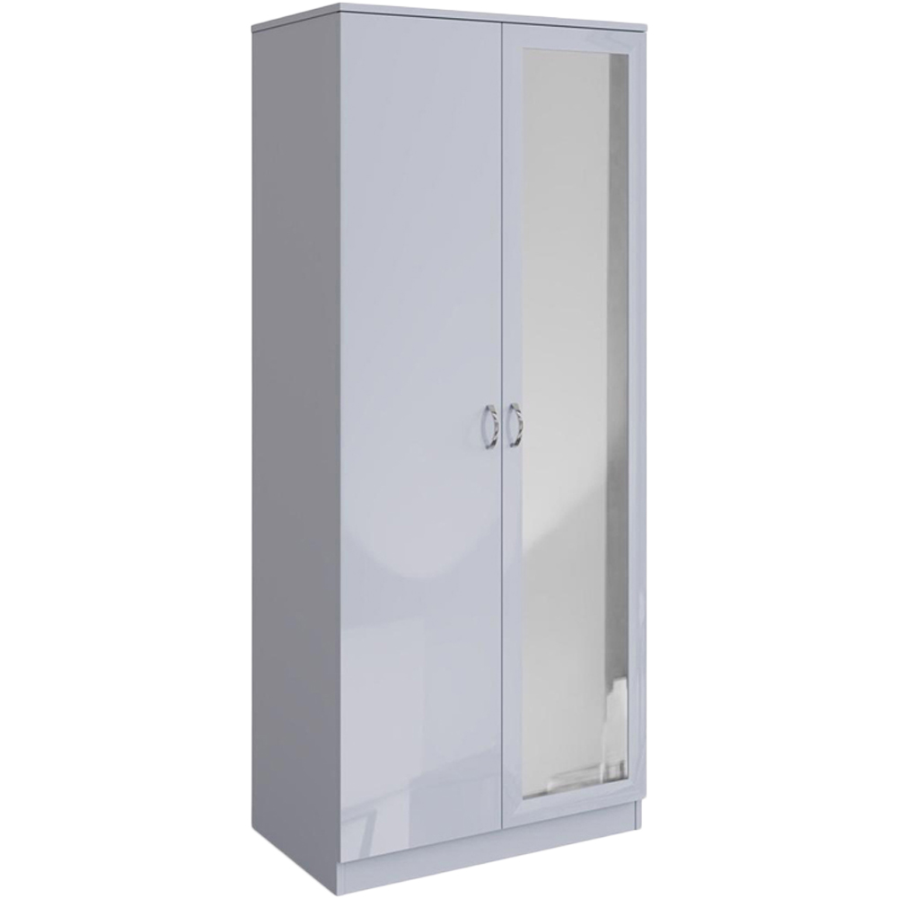 Simplify your mornings and declutter your life with the Chilton 2 Door Mirrored Wardrobe in Grey Gloss. This wardrobe is more than just storage, it's a solution to your daily dressing dilemmas. The large internal storage area, complete with a full-width hanging rail and overhead shelf, keeps your clothes organised and wrinkle-free, making it easy to find the perfect outfit. The combination of a sleek gloss grey door and a full-length mirrored door not only adds a touch of elegance to your room but also provides a convenient spot to check your appearance. With easy-opening and closing doors, accented by polished metal handles and a stylish matt effect frame, accessing your belongings is effortless. Delivered flat-packed for fast and easy home assembly with clear instructions, and featuring a scratch and UV-resistant melamine protective coating.