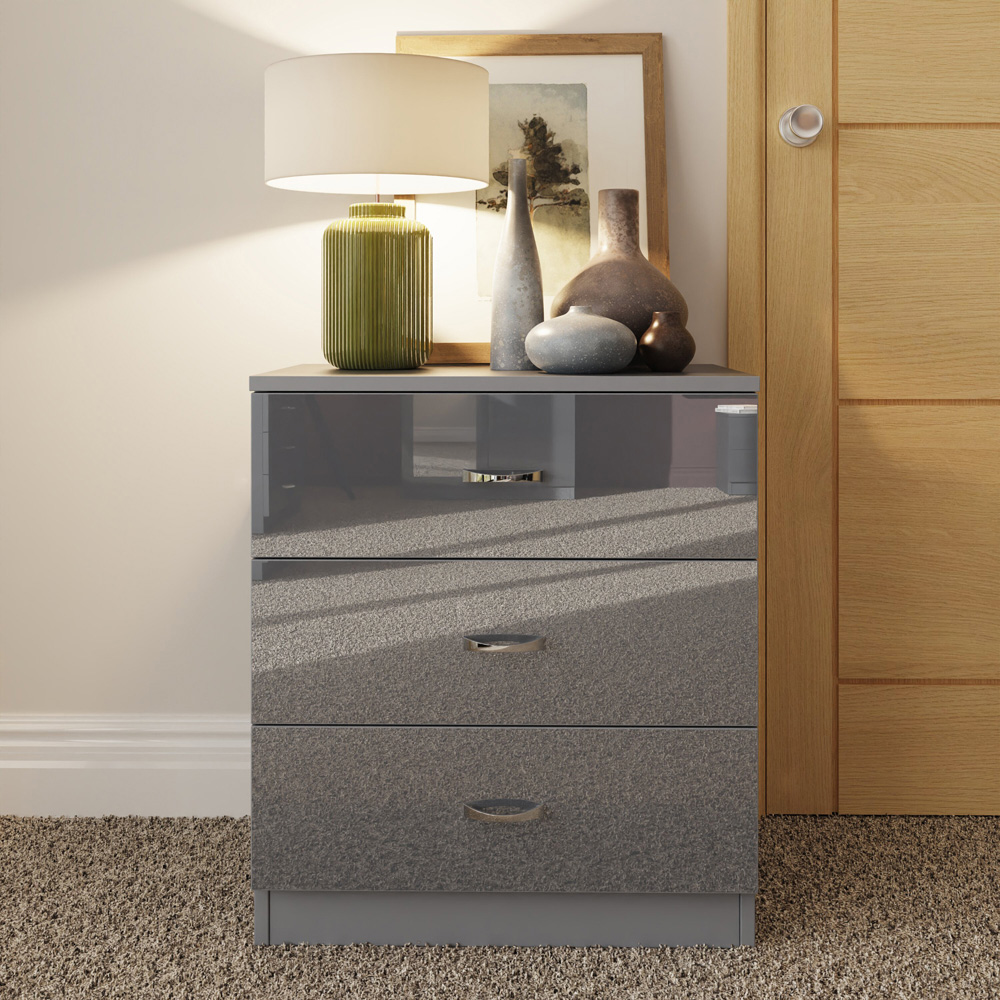 FWStyle Chilton 3 Drawer Grey Gloss Chest of Drawers