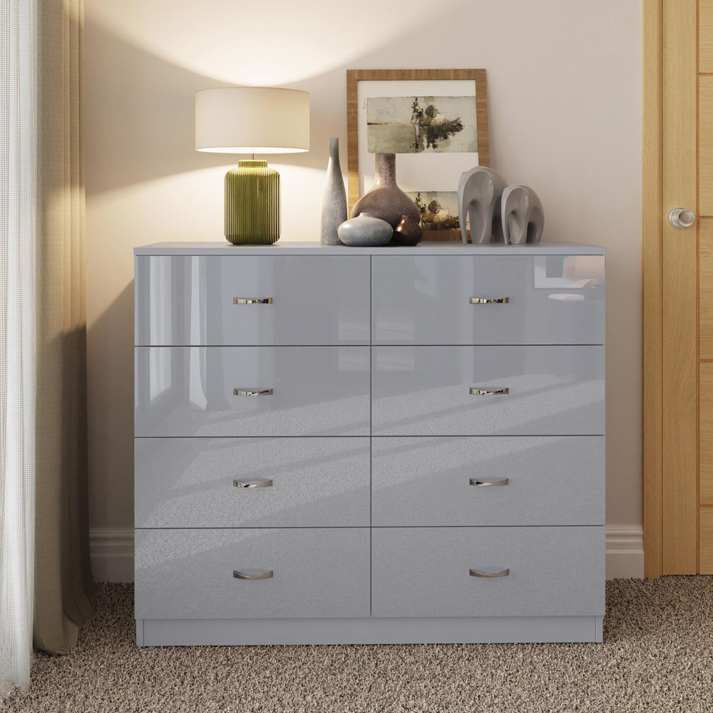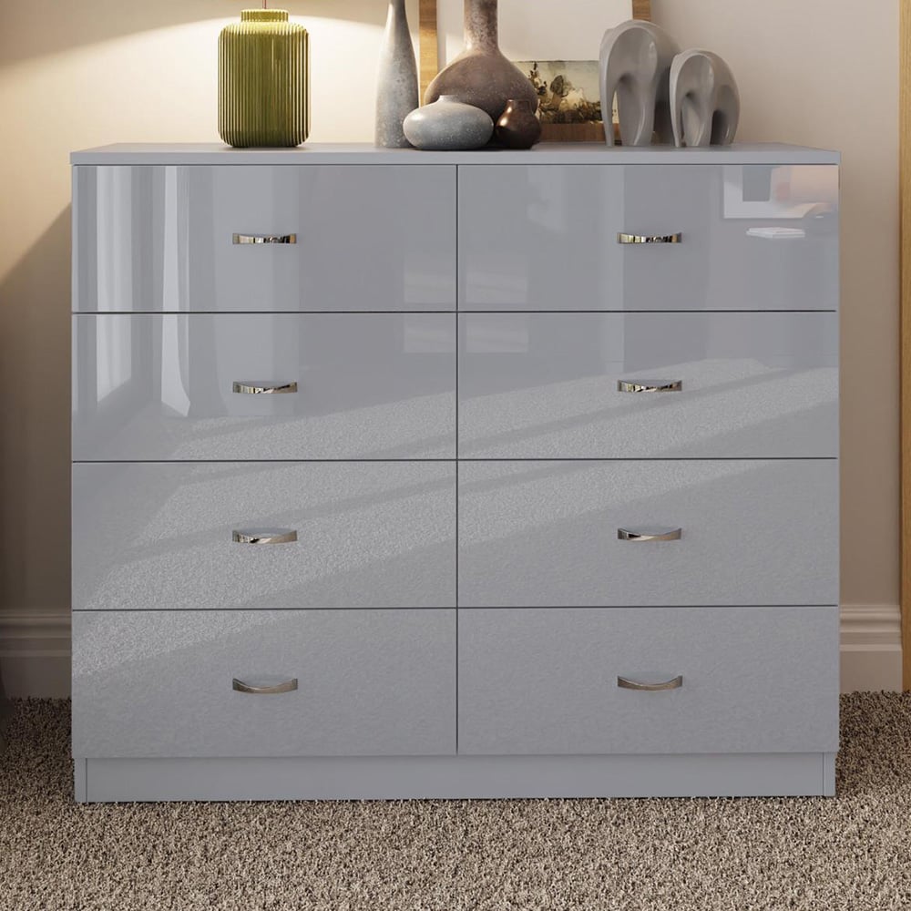 FWStyle Chilton 8 Drawer Grey Gloss Chest of Drawers