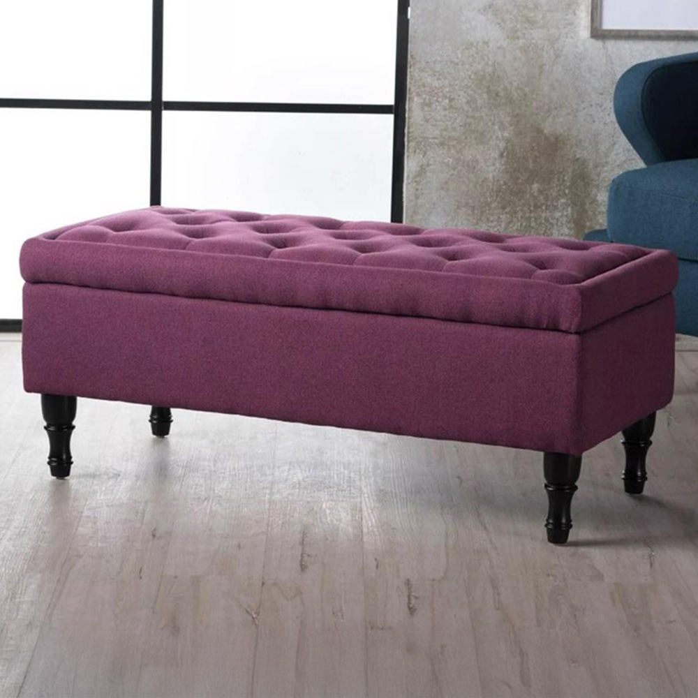 Check out the Ottoman Storage Bench, a stylish and comfy addition to your home! With its padded, buttoned seat in a rich Dark Fuchsia colour, it brings a touch of elegance to any space. The sturdy wooden legs provide a solid base, while the large storage compartment underneath is perfect for hiding away blankets, magazines, or remote controls, keeping everything neat and tidy. Plus, the metal hinges make it super easy to open and close. The best part? It arrives fully assembled, so you can just set it up wherever you need it and start enjoying the extra seating and storage right away.