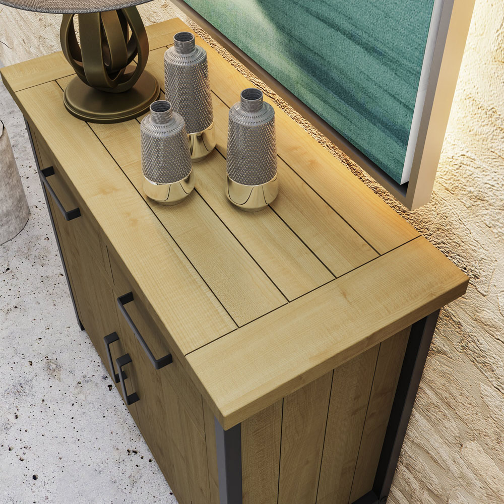 Introducing our Solid Reclaimed Driftwood Pine Modern Sideboard, a stunning storage solution that combines rustic charm with contemporary design. Crafted from driftwood lacquered finish pine, this sideboard showcases the natural beauty of reclaimed wood while incorporating modern industrial-inspired elements. The sideboard features a gunmetal grey powder coated quad-bar steel base, adding a touch of modern sophistication to its rustic appeal. Inspired by industrial styling, this sideboard stands out with its unique combination of materials.