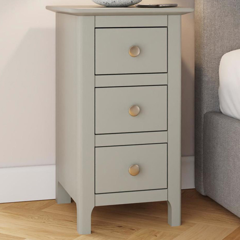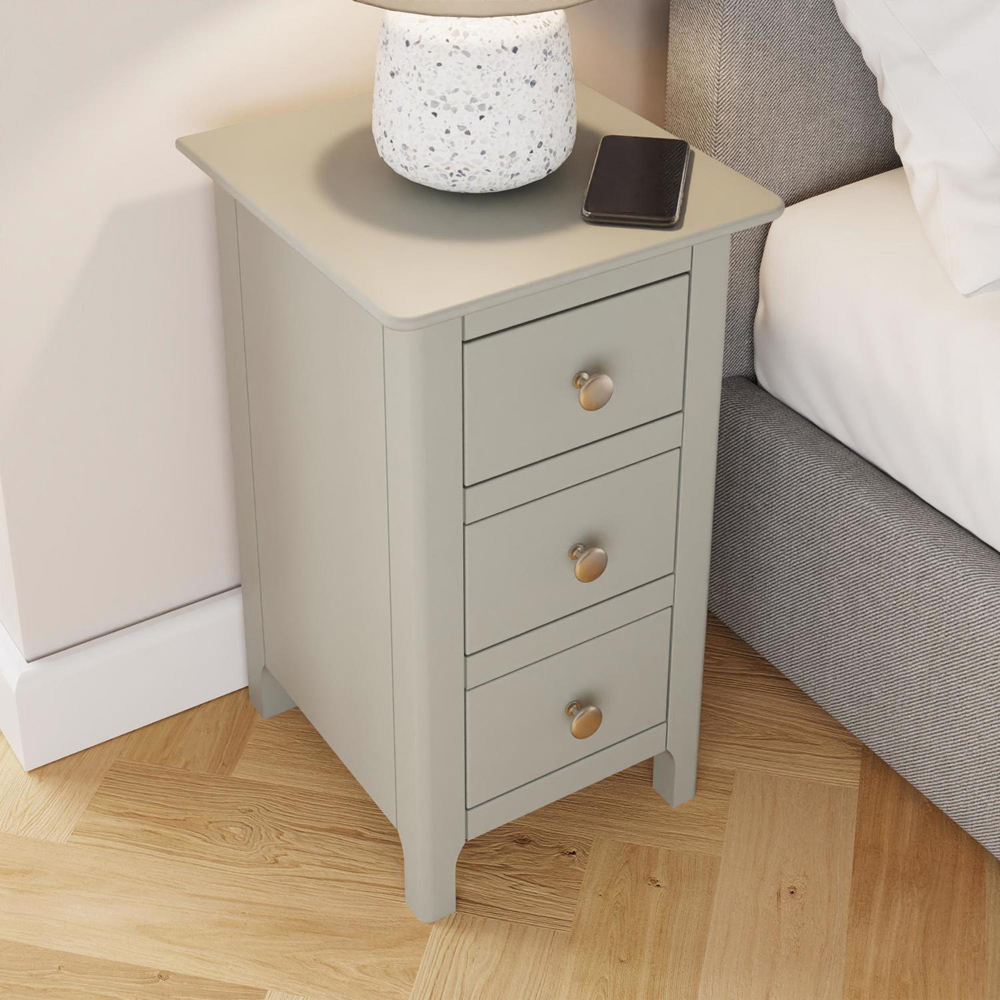Say hello to the Palma Grey 3 Drawer Slim Bedside Chest, your go-to storage solution for small spaces! Its sleek design offers three deep drawers, perfect for stashing away essentials like books, glasses, and personal items, all in a beautiful grey finish. Made from sturdy MDF and solid wood, this chest is built to last and features stylish round brushed metal knobs and smooth drawer runners for easy access. Plus, it comes fully assembled in one box, so you can quickly set it up and start organizing your bedroom in no time!