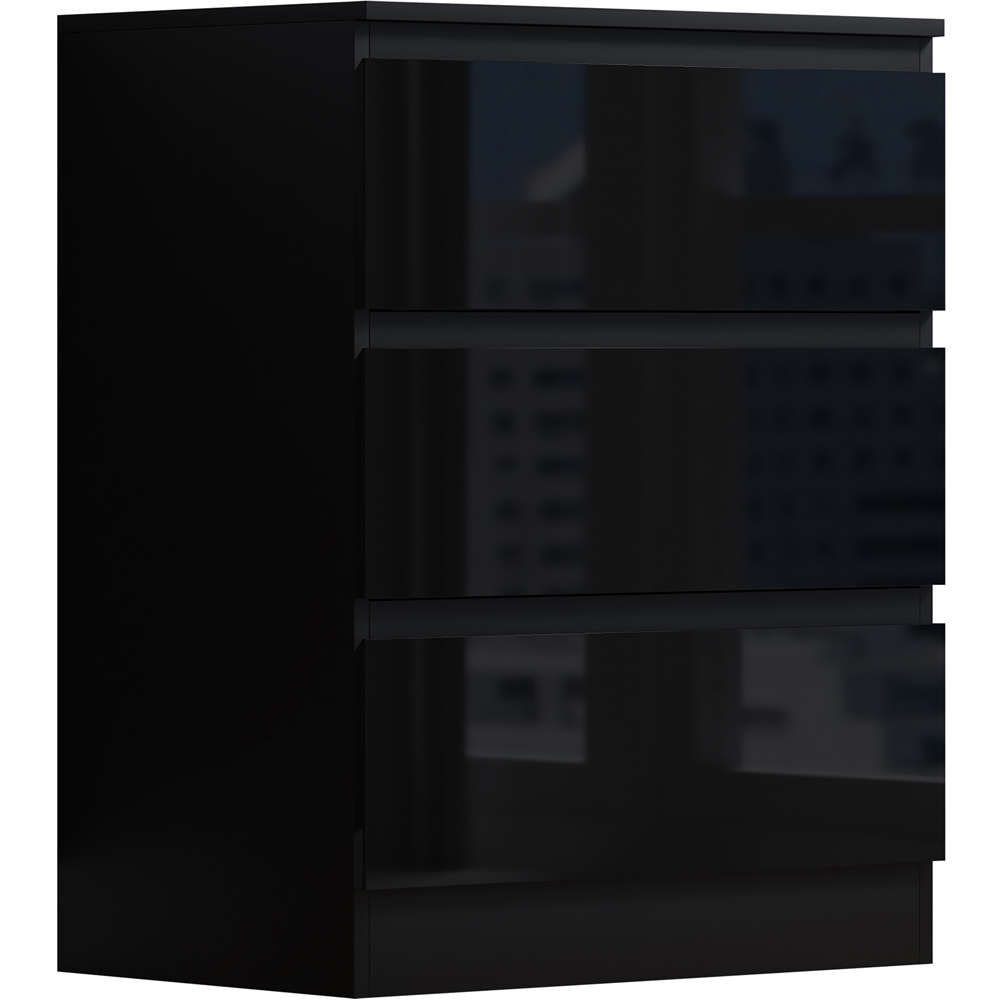 This 3 Drawer Chest of Drawers in Black Gloss is the perfect addition to any contemporary home, offering stylish storage and organisation. This piece features a matt finish frame contrasted by stunning black gloss drawer fronts that beautifully reflect light, enhancing the ambience of your space. The three spacious 14cm internal depth drawers provide ample room for clothing, linens, and accessories, making it as functional as it is fashionable.