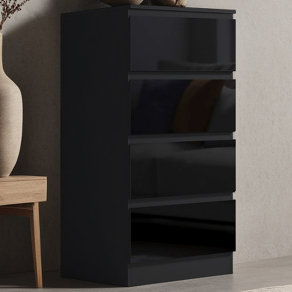 FWStyle Stora 4 Drawer Black Gloss Chest Of Drawers