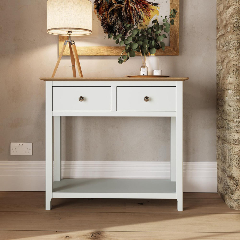 Meet the 2 Drawer Oak Console Table, the perfect blend of style and practicality for your home! Finished in a sleek colour, it adds a modern touch to your entryway, living room, or hallway. Made from high-quality solid oak, MDF and oak veneer, it's built to last while showing off the wood's natural beauty. The two spacious drawers come with easy-grip metal handles, making it super convenient to access your essentials and keep your space tidy. Plus, it’s designed for quick assembly and arrives flat-packed, so you can set it up hassle-free.