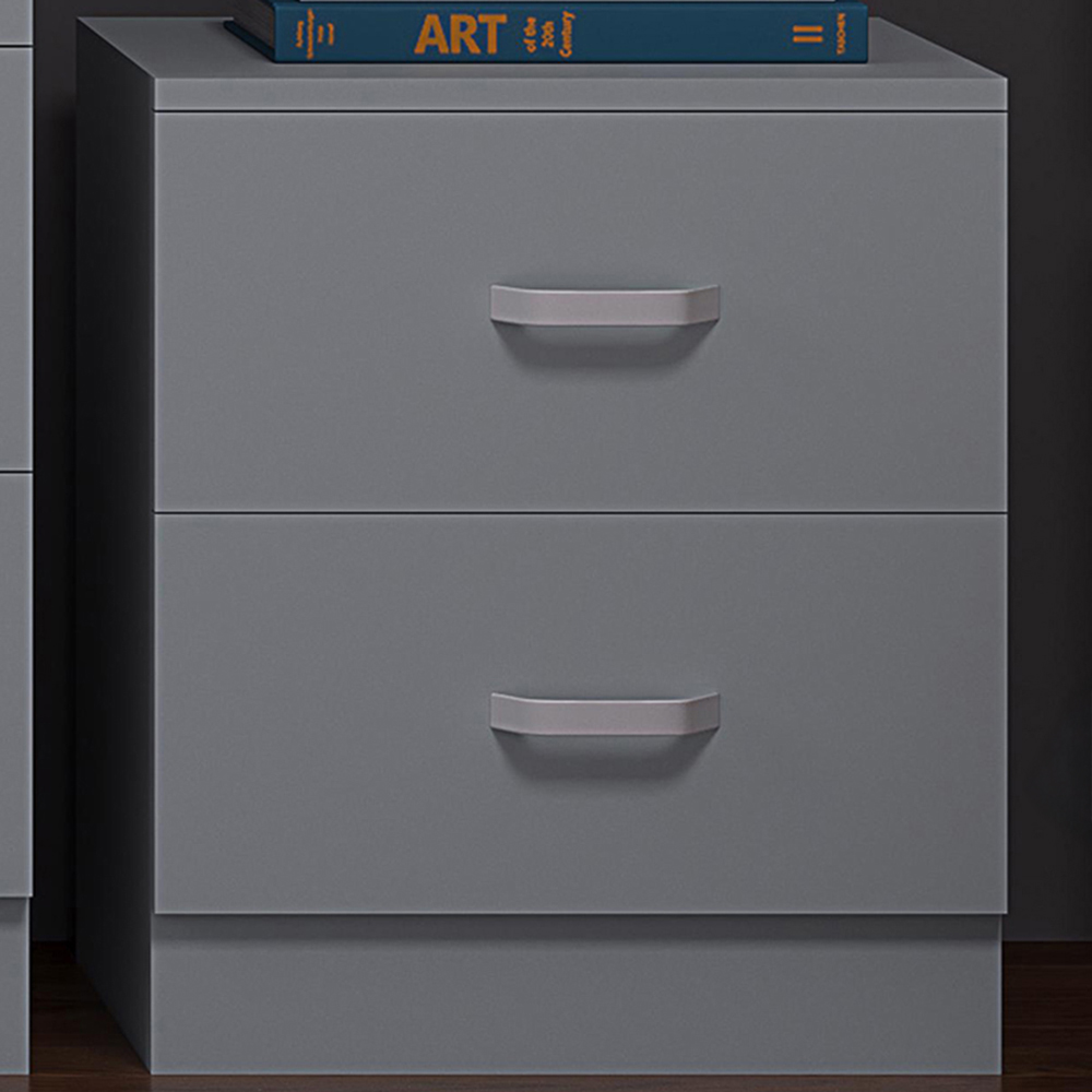 Simplify your bedtime routine with the Tunis 2 Drawer Bedside Chest. Delivered flat packed with easy-to-follow instructions, this chest provides ample storage right where you need it. The two large, 12cm deep drawers keep your essentials organised and within easy reach, eliminating clutter and making your mornings smoother. Finished in a sleek matt grey with metal pull handles, and protected by a scratch and UV resistant melamine coating, this bedside chest not only looks good but also withstands the wear and tear of daily use, simplifying your life and keeping your bedroom tidy with minimal effort.