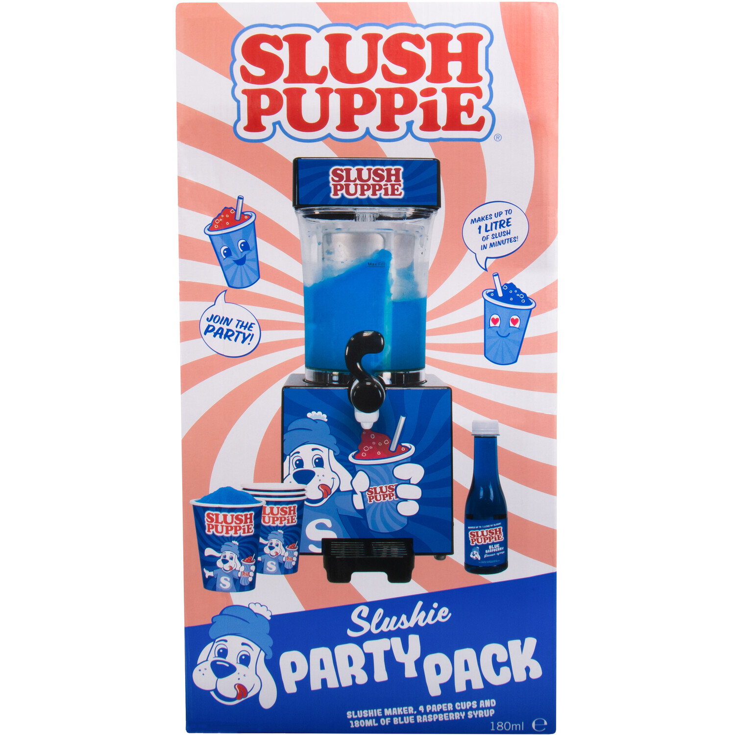 Serve your favourite Slushie from the comfort of your home with this cool Slush Puppie Slushie Party Pack. This set includes everything you need to make delicious Blue Raspberry syrups which are perfect for parties and everyday use. Easy to use and the perfect addition to your kitchen, this party pack is bound to leave a smile on anyone's face. The machine is super fast too, making up to a litre of slush in just a matter of minutes.