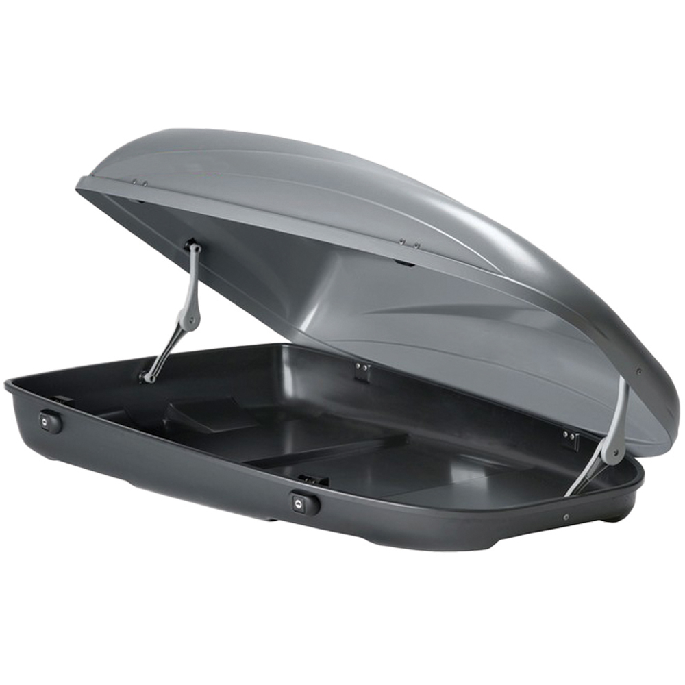 Carry all the items you need for a trip away with the family using this Krono Roof Box from G3. The roof box is stylish and has a sleek grey finish. With multiple fixing holes, the roof box is suitable for fitting into varying roof bar centres. The roof box has a central locking system with a single latch, twin dynamic spring struts and lashing straps to secure the load inside. The roof box is easy to fit with no tools required, plus the U-bolts and T-bolts are supplied to fit the box to the roof bars. Capacity: 400L.