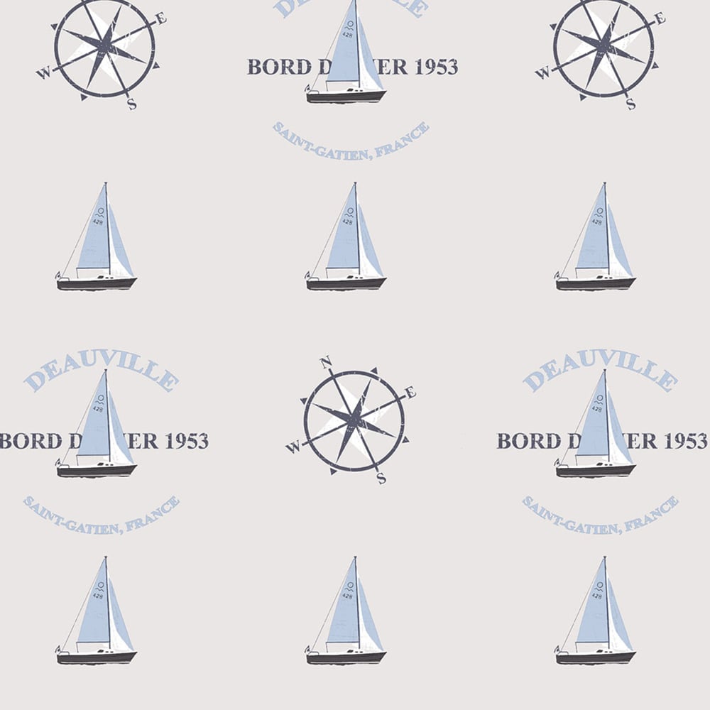 Nautical themed, this Deauville 2 Wallpaper from will make a charming addition to your decor. It features boats and compass points in blue and white on a grey background for a unique look. With a washable high-quality finish, this wallpaper is wet removable for easy relocation. Method: Paste the Wall.