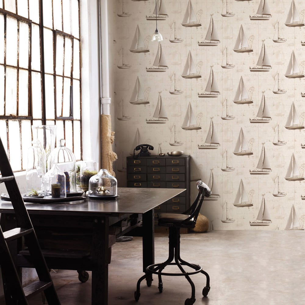 Add a nautical feel to your home with the Galerie Global Fusion Sailing Boat Wallpaper. Featuring tranquil sailing boats set against a map-themed backdrop in shades of beige, this wallpaper from the Global Fusion collection is certain to add a tranquil feel to your interiors. The wallpaper is washable and can be wet removed. Application: Paste the wall.