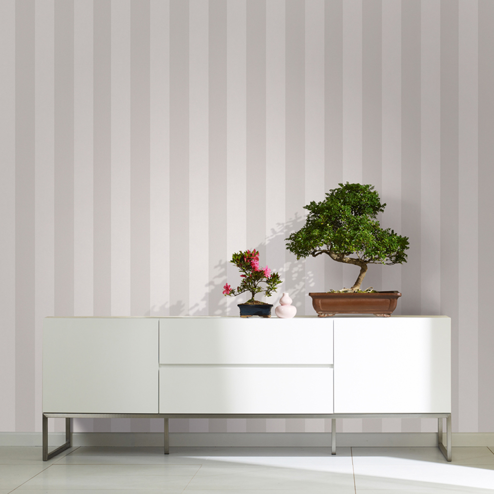 Bring elegance to your room with Galerie Industrial Effects White and Beige Wallpaper. It is a striped and textured wallpaper in white and beige. It has a classic interior design scheme which can elevate any room.