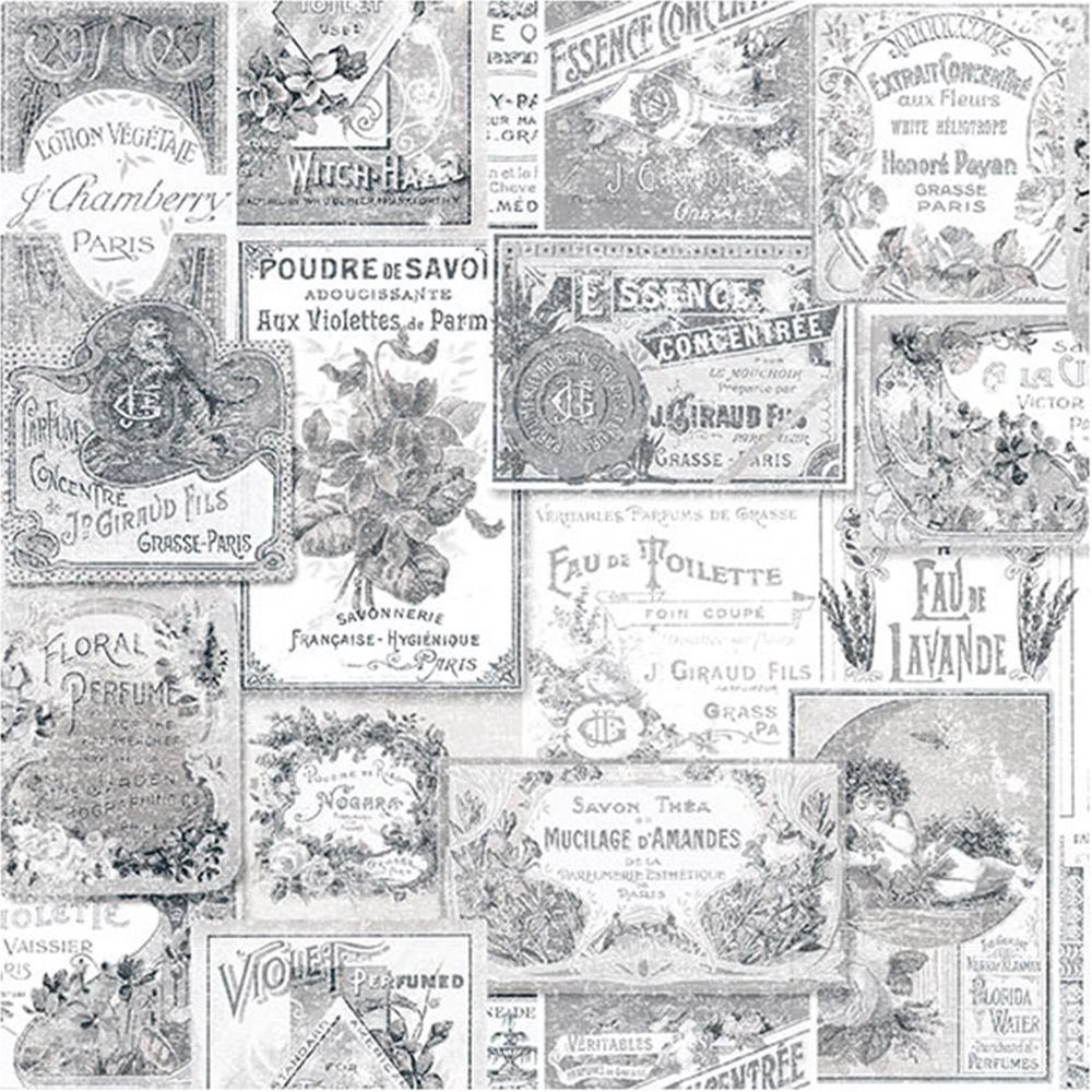 Elevate your decor with this Galerie Nostalgie Perfume Labels Black and White Wallpaper. The wallpaper features a collage of perfume labels in distressed black and white hues. These are the scents that Grandma would have used youthful and pretty in her finery, the belle of the ball. Perfectly taking you back to the old days, this wallpaper makes a unique addition to your app. Also, it adds interest to your walls while the black and white works well with your antique furnishings or contemporary designs. Washability: Washable. Removability: Strippable. Application: Paste the Wall.