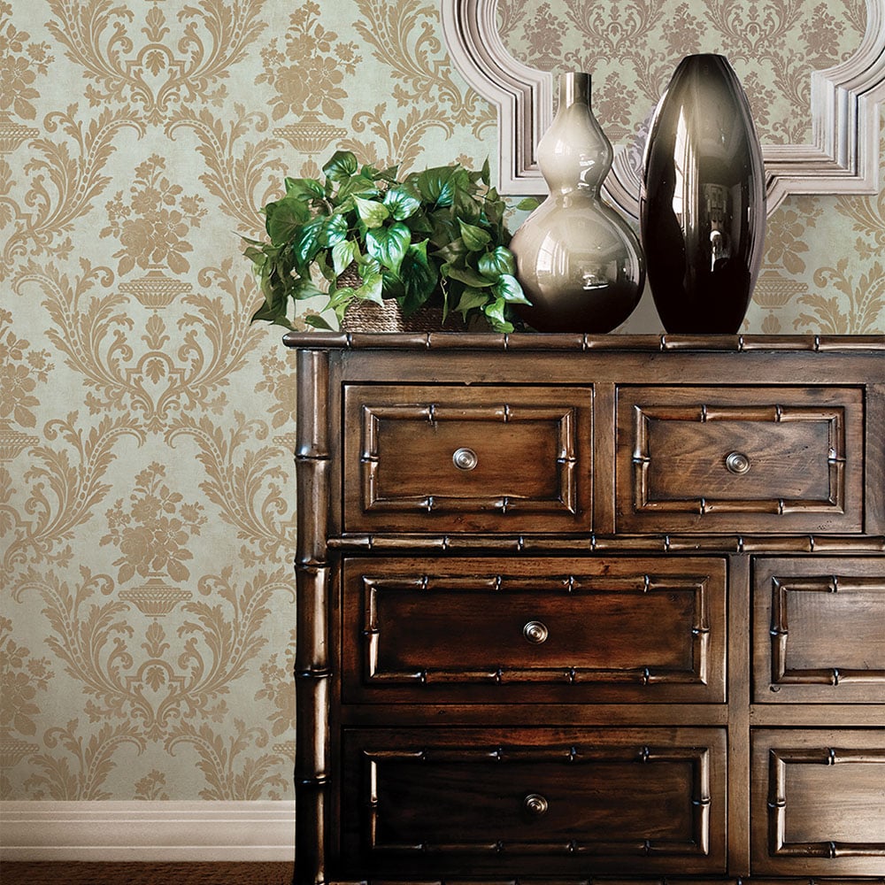 Enhance the soothing atmosphere in your home with the Galerie Stripes and Damask 2 Wallpaper. The wallpaper features a timeless and chic muted gold damask design that stands out amongst the duck-egg background. It can be used for the whole room or a wall to create a warm and inviting ambience. This wallpaper is washable and easy to maintain for a pristine appearance. This wallpaper is pre-pasted for easy wall application and peelable for easy removal. Each roll is 10m long and 53cm wide. Pattern repeat: 53cm straight match.
